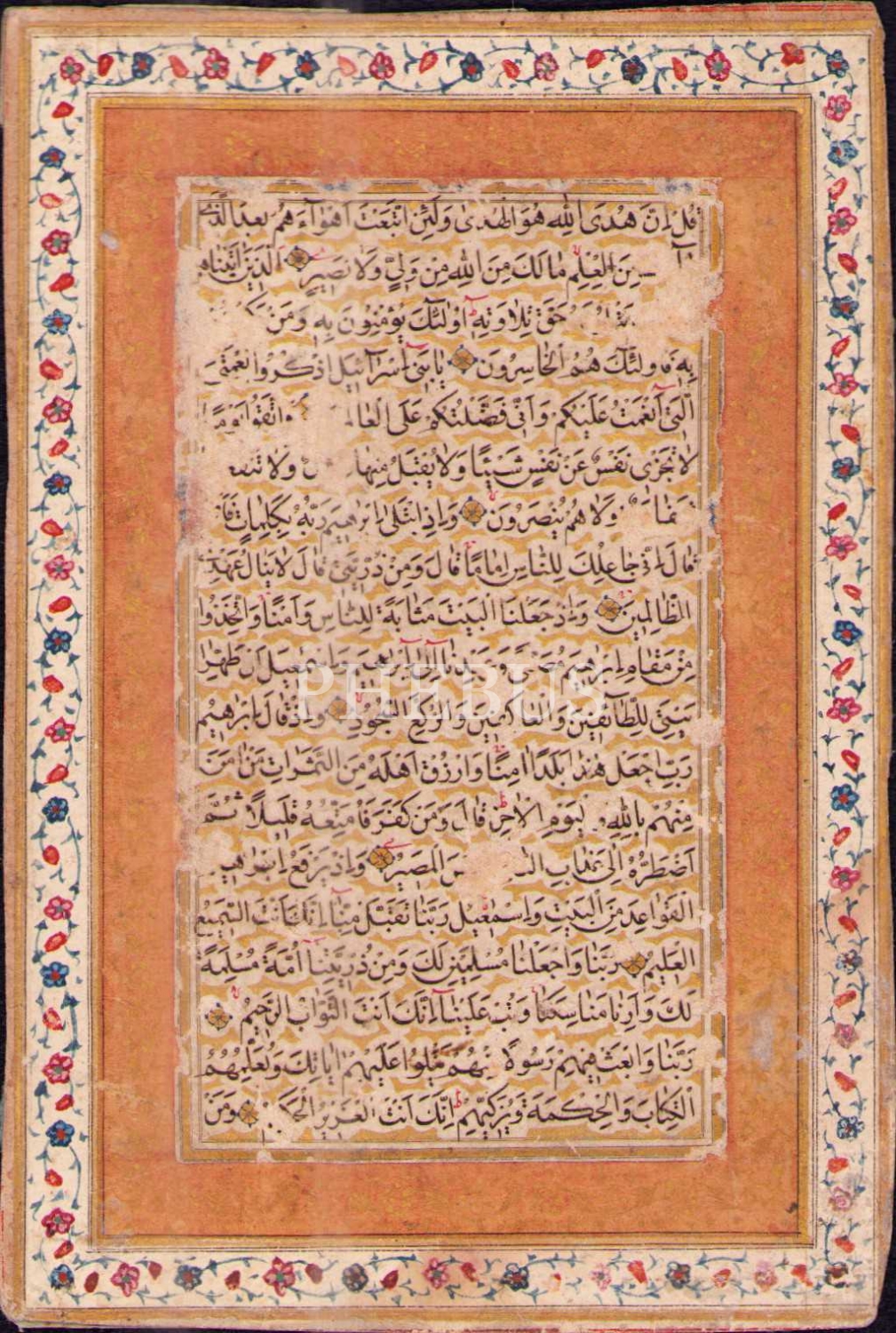 Erken dönem, ince bir nesihle ustaca yazılmış ve beyne's-sütur [satır arası] tezhipli bir sahife, 5x9 cm