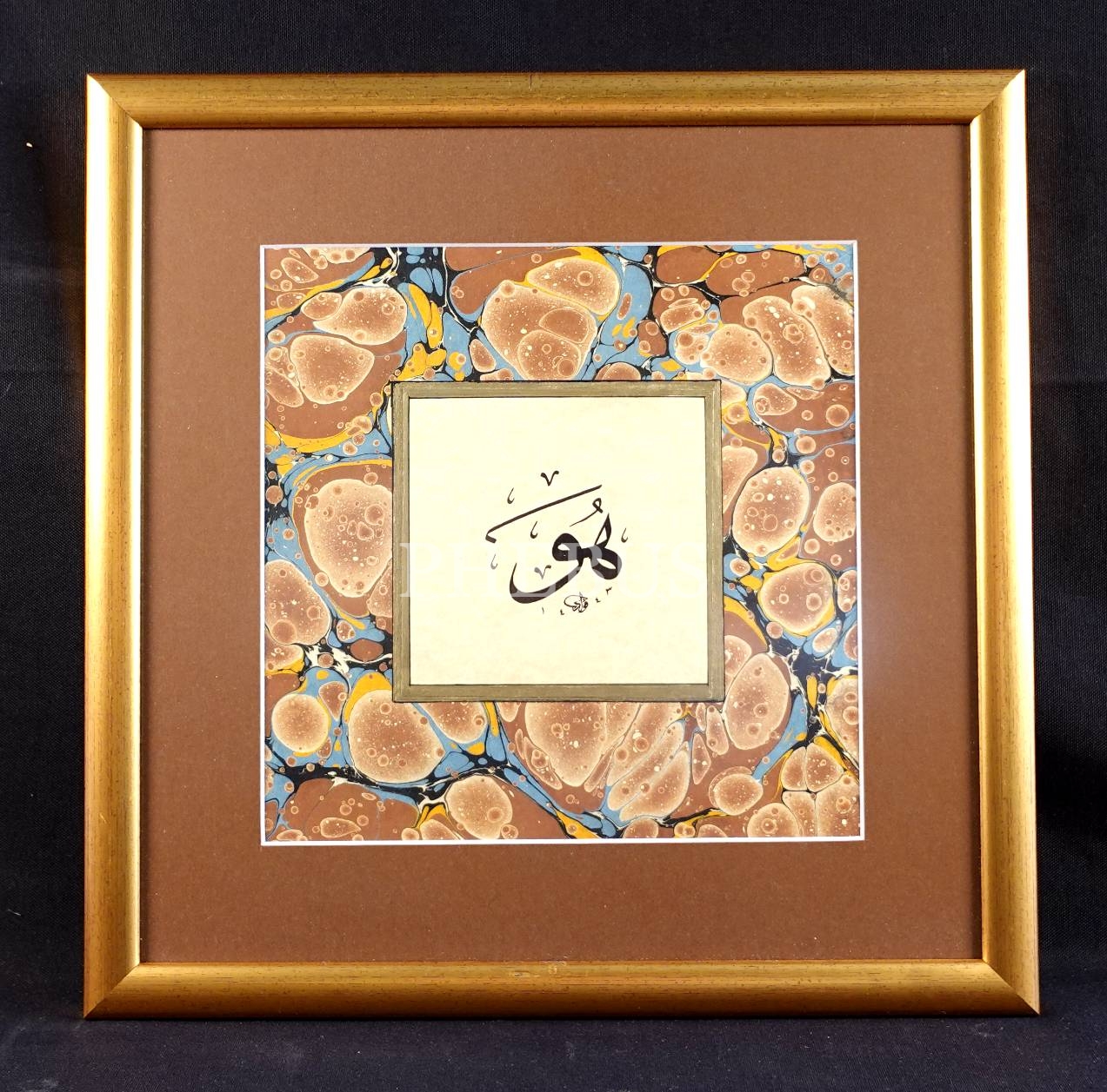 Fuat Başar ketebeli "Hüve", ebru pervazlı, 48x64 cm