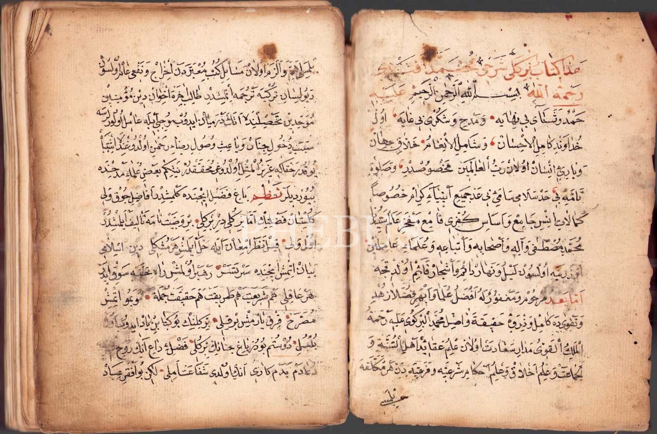 Osmanlıca RİSÂLE-İ BİRGİVÎ ŞERHİ [İlmihal], 970 tarihli, deri cildinde kurt delikleri mevcuttur, 160 sayfa, 15x20 cm