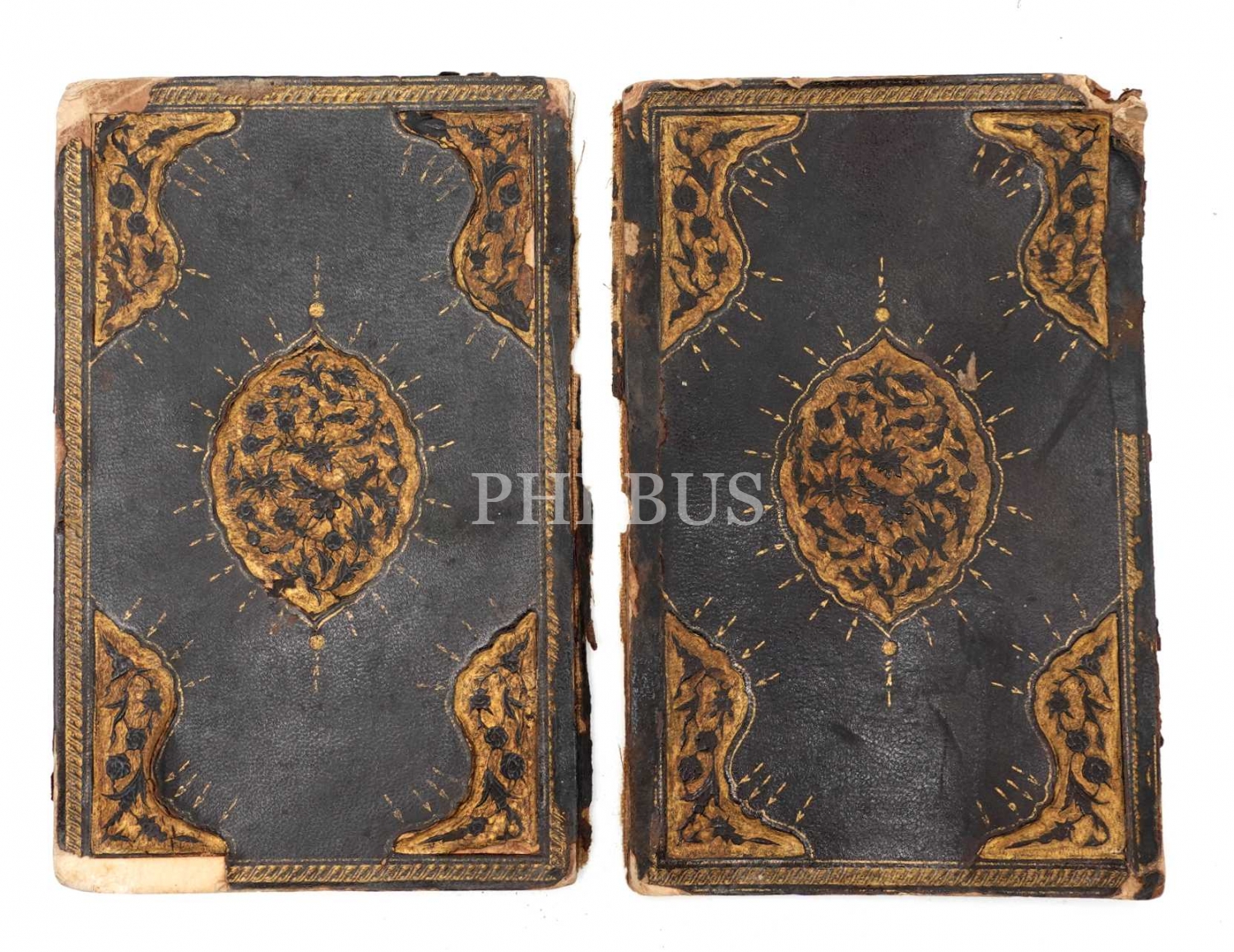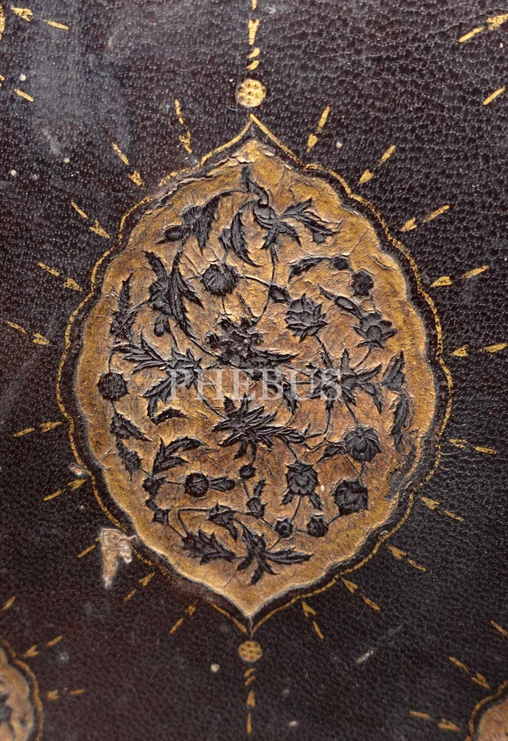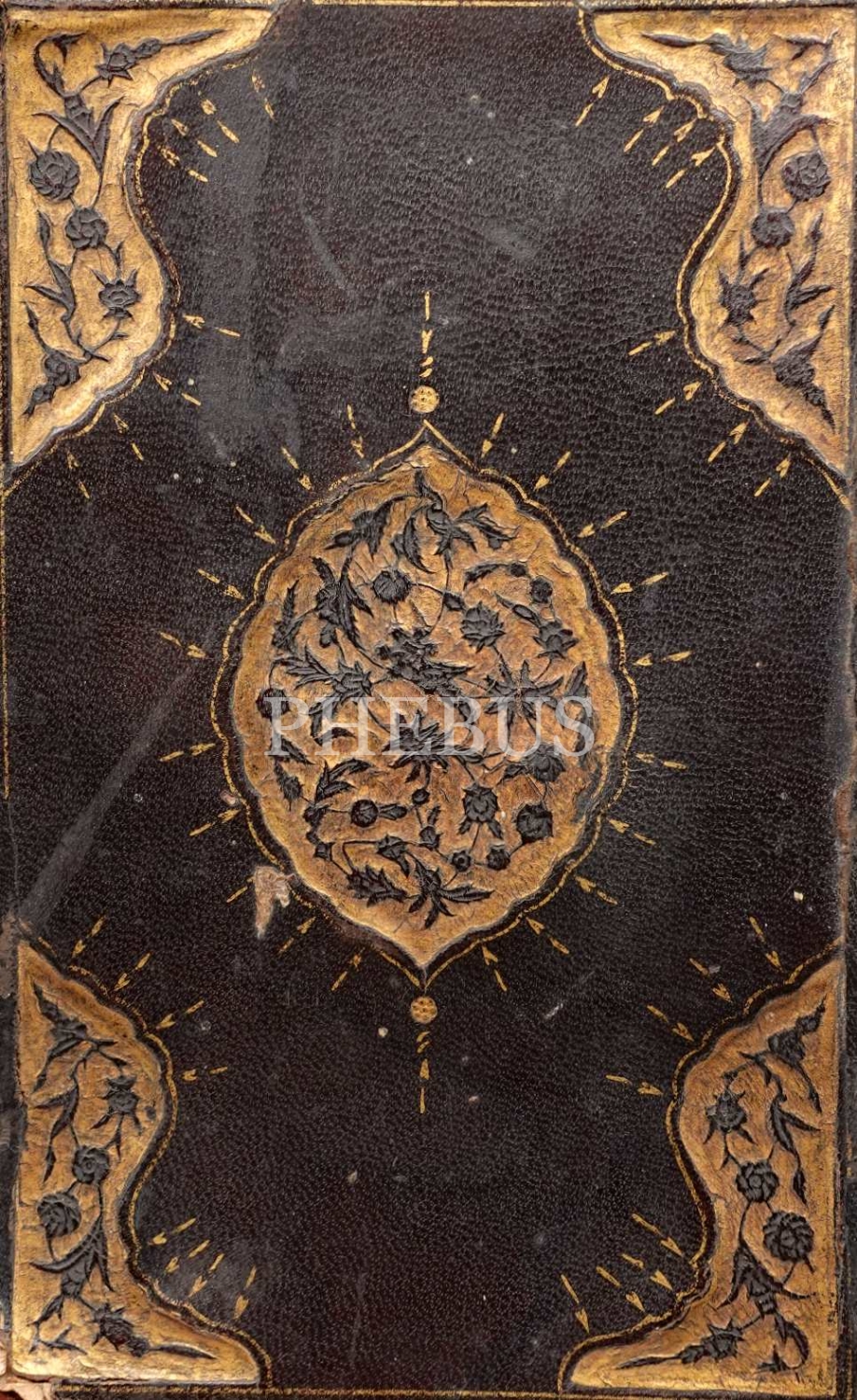 18 yy altın tenzinatlı, şemseli, köşebentli, zencirekli Osmanlı el yazma cildi, köşebent içleri hatayi desen işçilikli, 11x16 cm