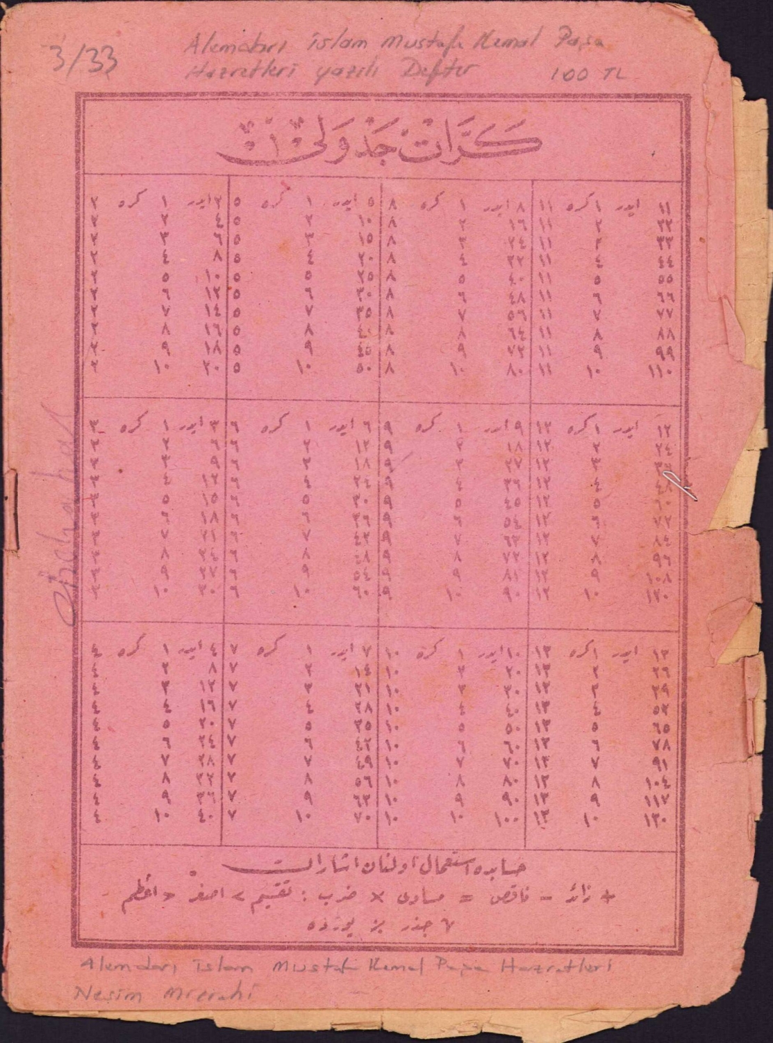 Alemdar İslam Mustafa Kemal Paşa Hazretleri yazılı öğrenci defteri, 15x21 cm