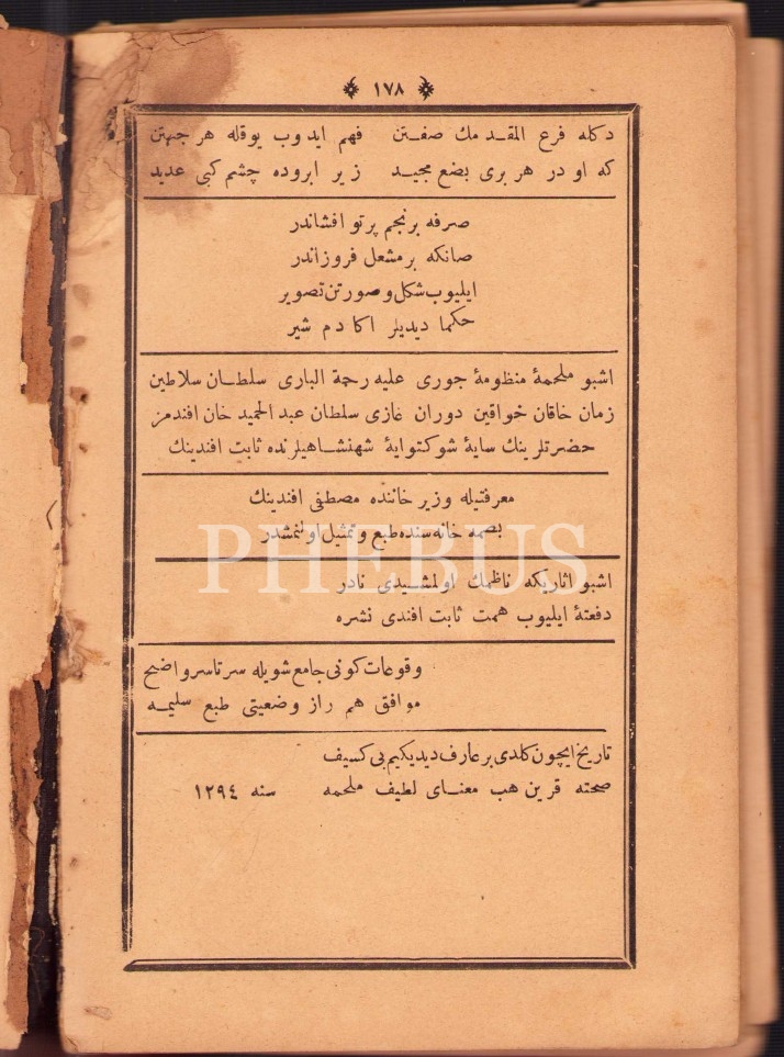 MELHAME-İ CEVRÎ [Manzum], 1294, 178 s., 13x20 cm, bazı sayfaları yenik haliyle