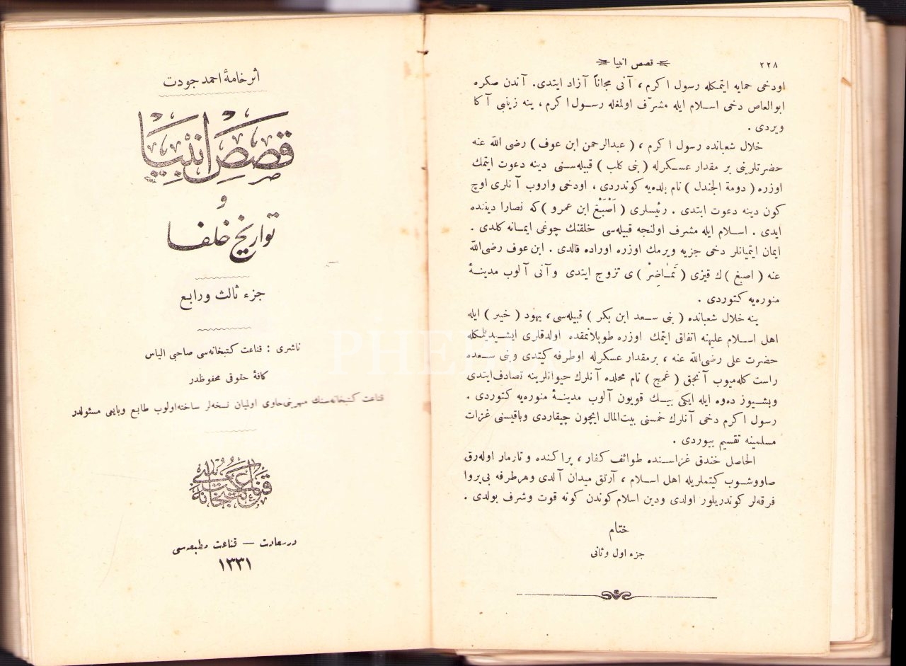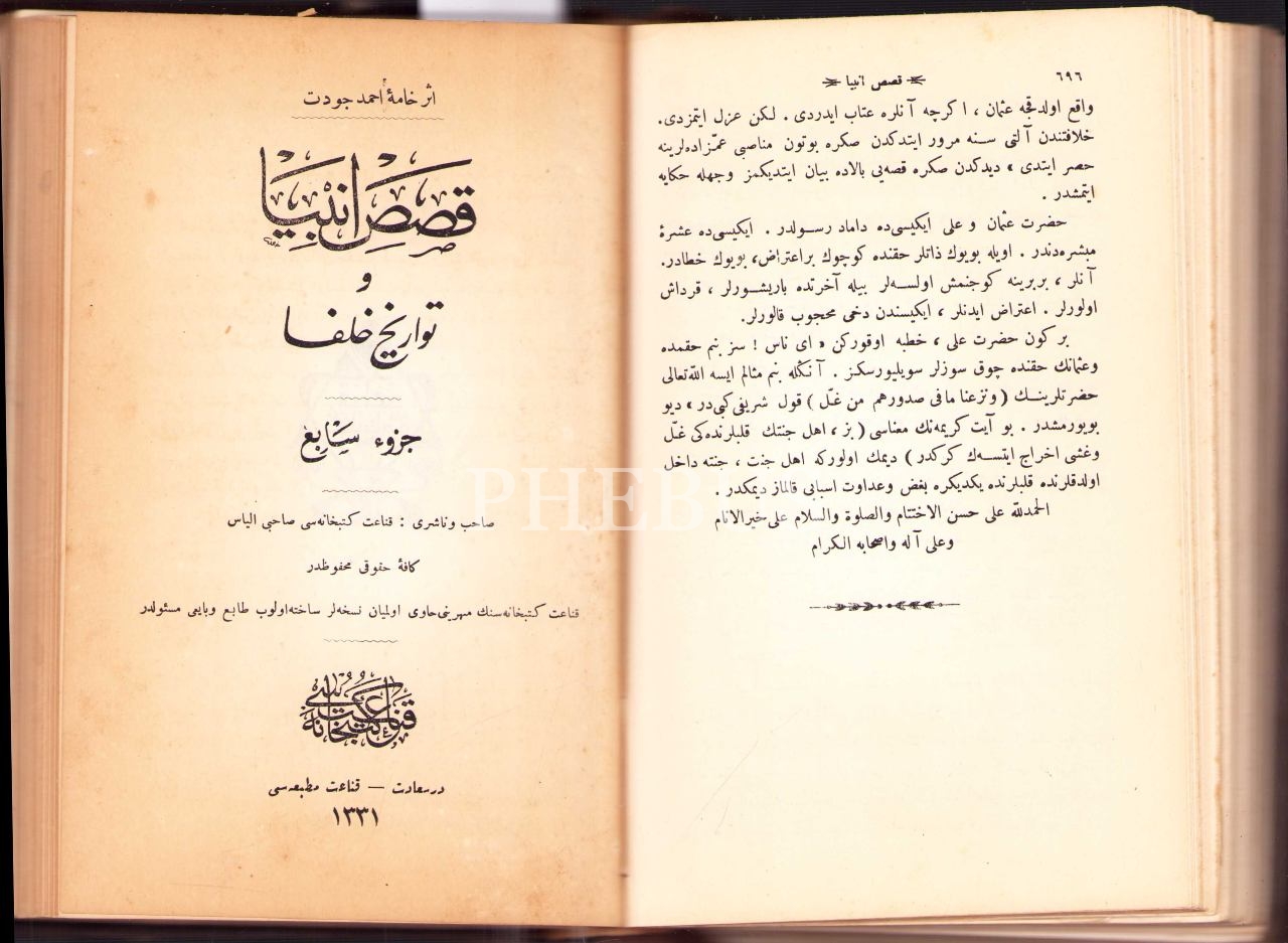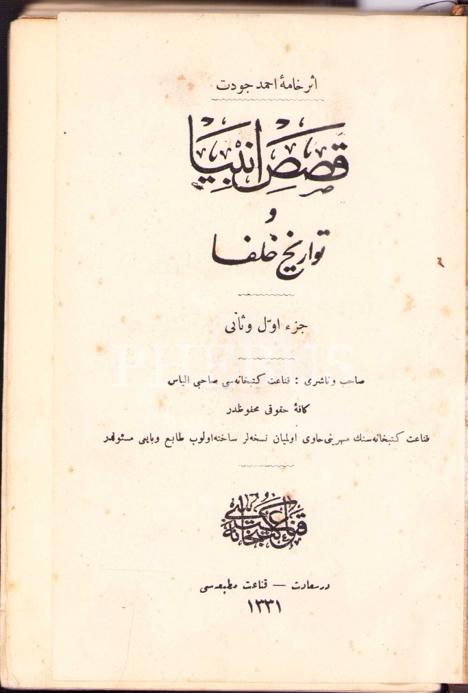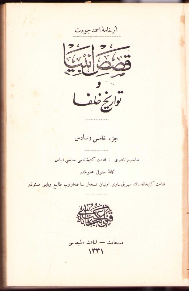 KISAS-I ENBİYÂ VE TEVÂRÎH-İ HULEFÂ (8 Kısım), Ahmed Cevdet, Kanaat Matbaası, Dersaadet 1331, 696+320 s., 15x22 cm