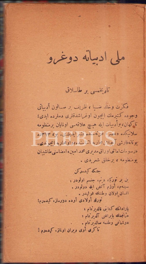 MİLLÎ EDEBİYYÂTA DOĞRU (1. Cild), Nüzhet Haşim, İstanbul 1918, 173 s., 12x20 cm
