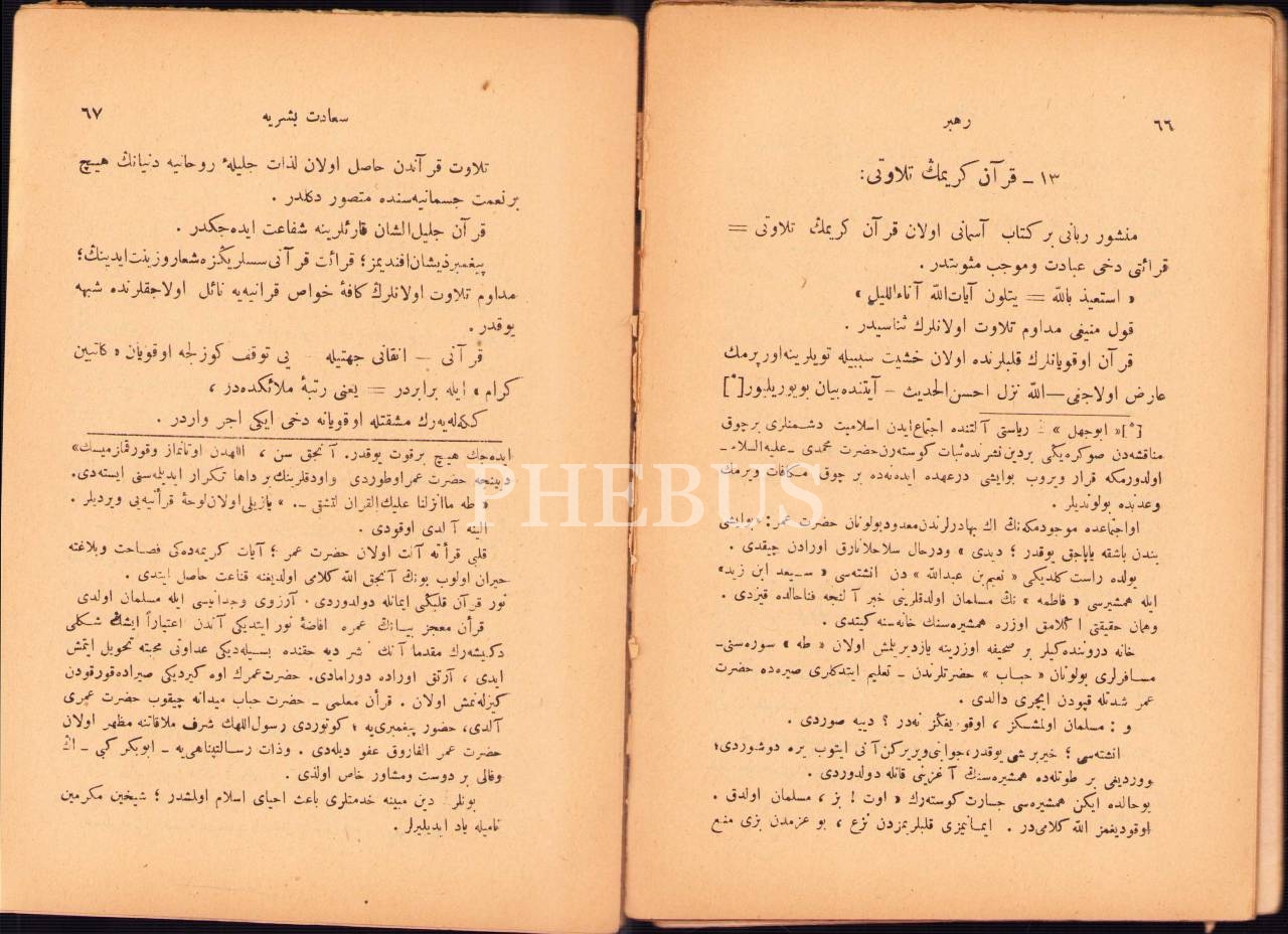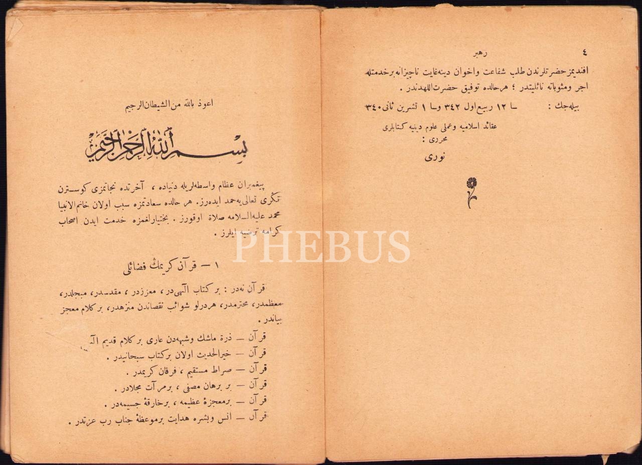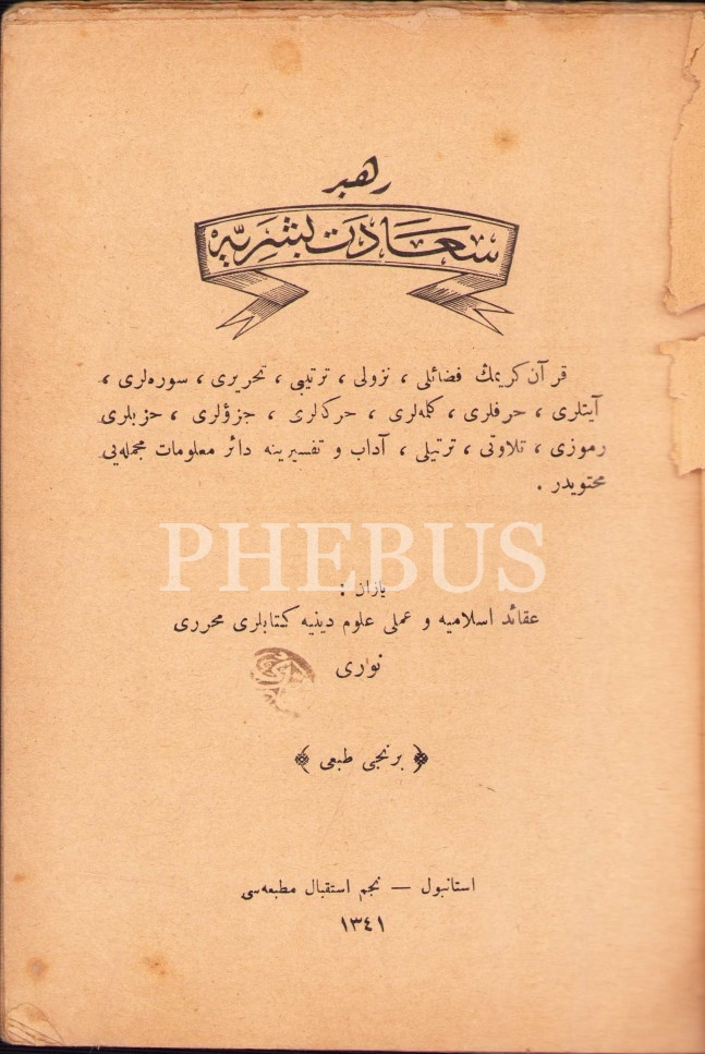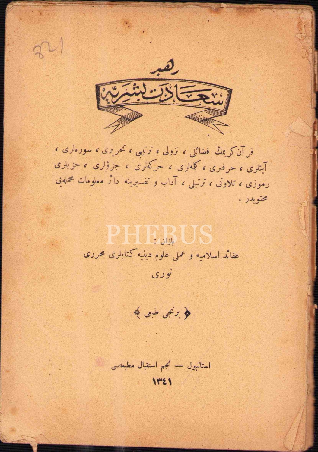 REHBER-İ SAÂDET-İ BEŞERİYYE, Nuri, Necm-i İstikbâl Matbaası, İstanbul 1341, 88 s., 13x19 cm, ciltsiz ve formaları ayrık haliyle