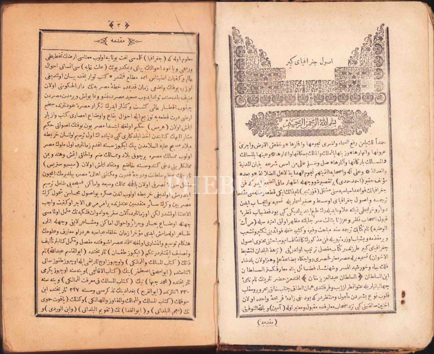 USÛL-İ COĞRAFYA-YI KEBÎR, Şeyh Yahya Efendi Matbaası, 1292, 664 s. [658-663 arası eksik], 15x24 cm