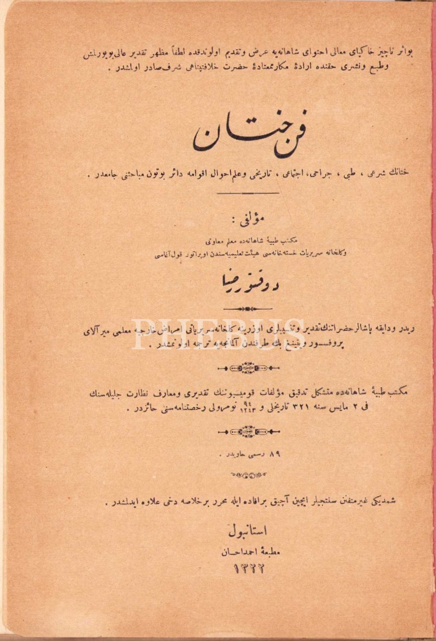 FENN-İ HITÂN [SÜNNET], Doktor Rıza, Ahmed İhsan Matbaası, İstanbul 1322, 248 s., 17x24 cm
