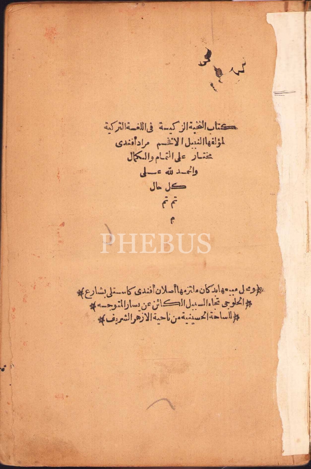 KİTÂBU'N-NUHBETİ'Z-ZEKİYYE Fİ'L-LÜGATİ'T-TÜRKİYYE [Türkçe Dilbilgisi], Murad Muhtar, Mısır 1300, 84 s., 16x23 cm