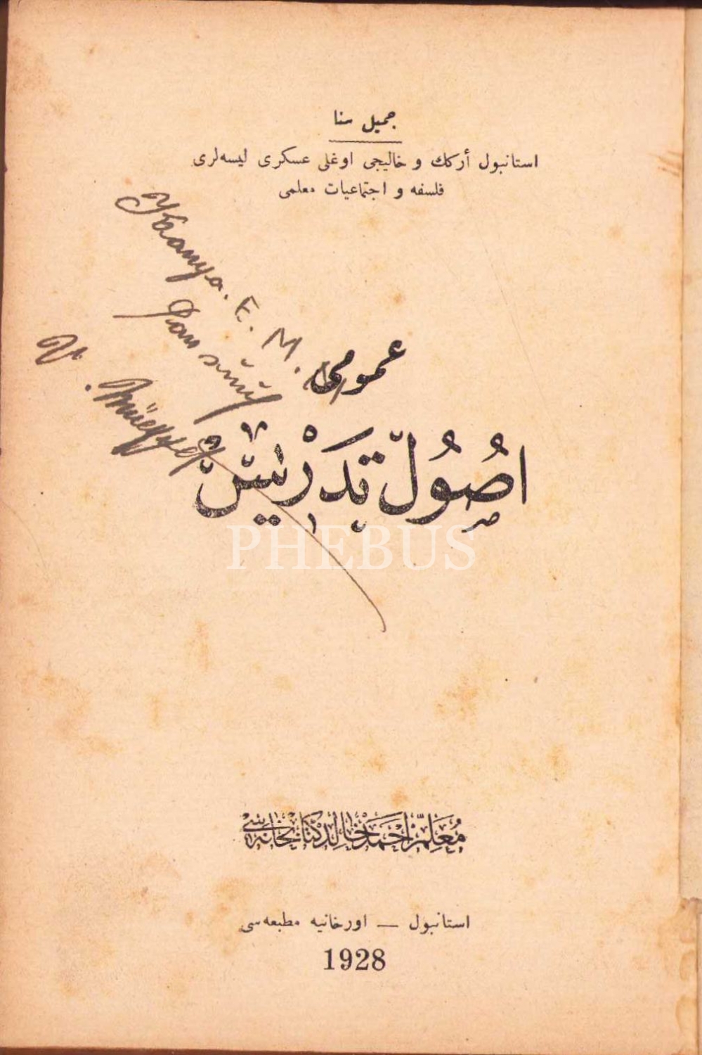 UMÛMÎ USÛL-İ TEDRÎS, Cemil Sena, Orhaniye Matbaası, İstanbul 1928, 260 s., 14x20 cm