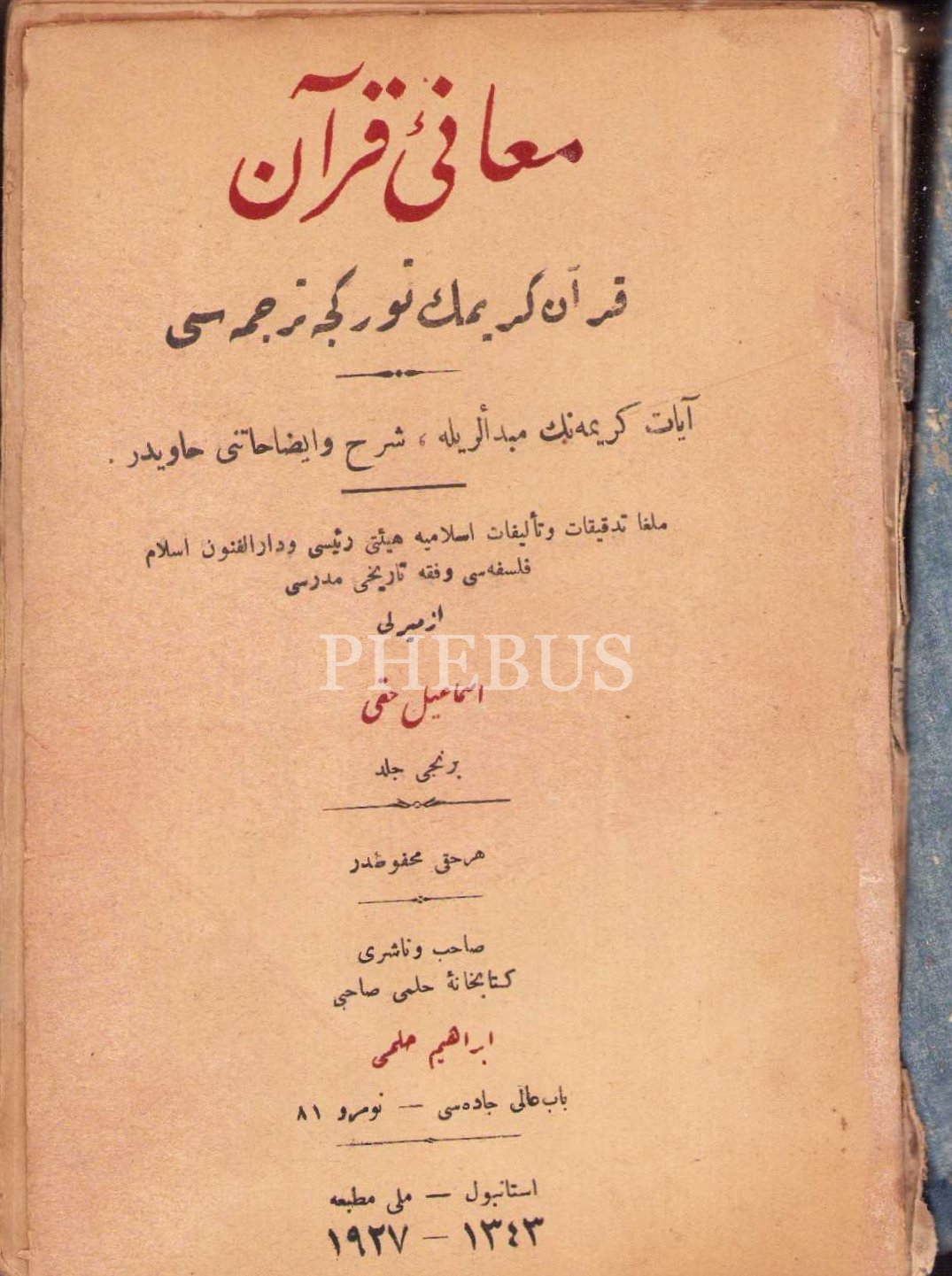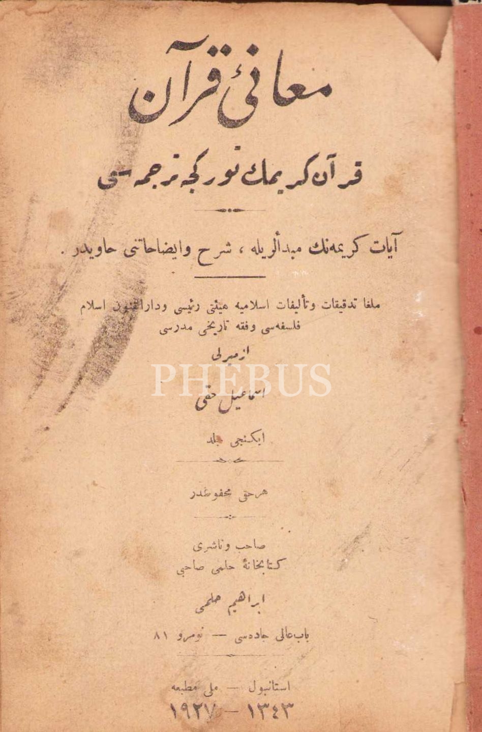 MAÂNÎ-İ KUR'ÂN [2 Cilt], İzmirli İsmail Hakkı, Milli Matbaa, İstanbul 1927, 494+631 s., 14x19 cm, sırtı ayrık haliyle
