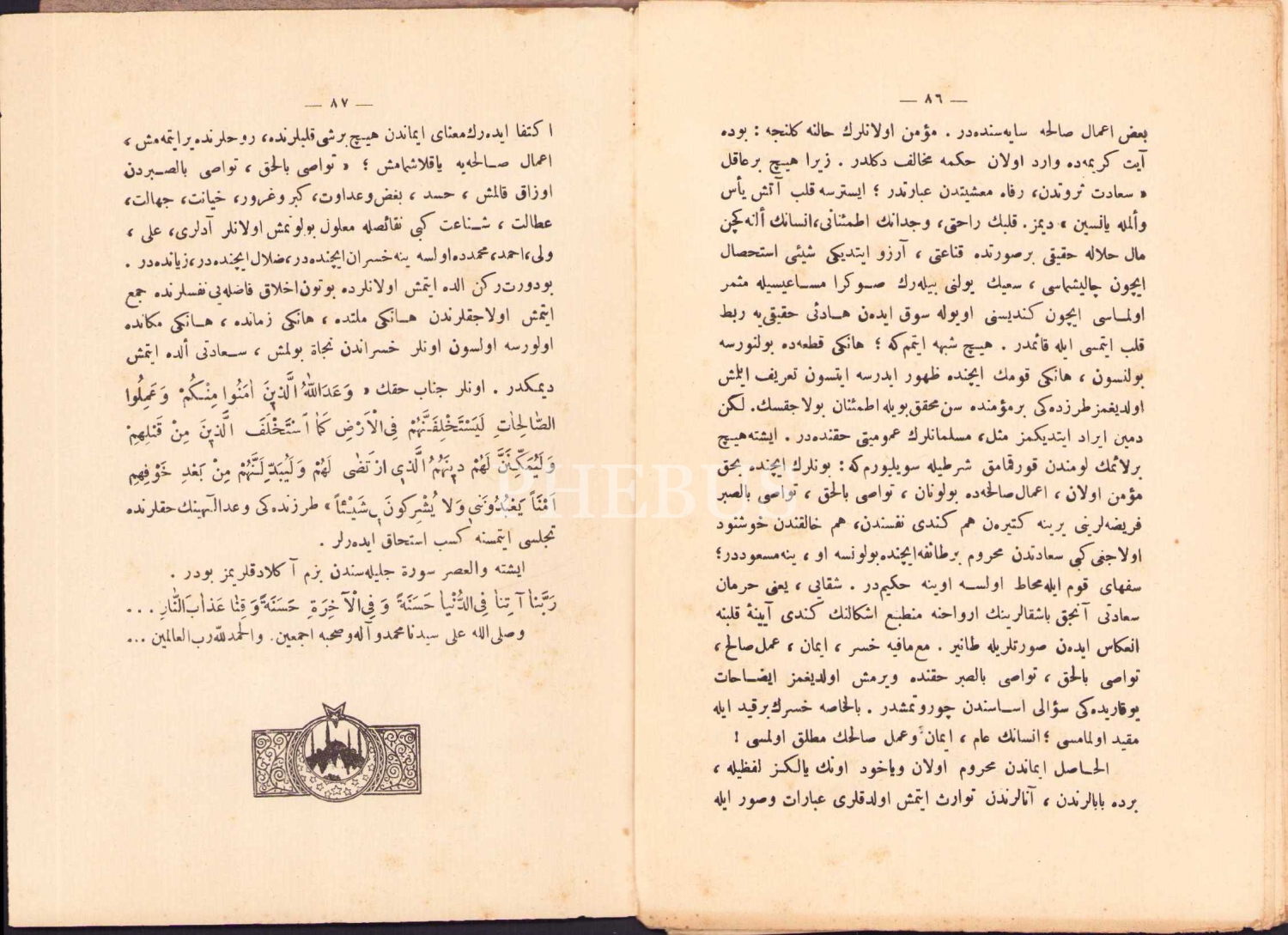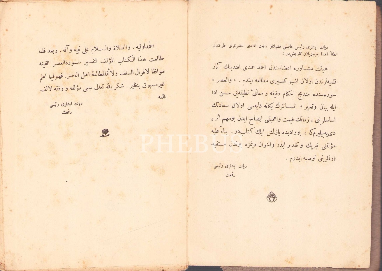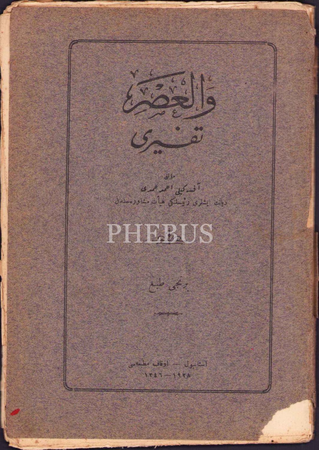 VE'L-ASR TEFSÎRİ [1. Baskı], Aksekili Ahmed Hamdi, Evkaf Matbaası, İstanbul 1928, 87 s., 14x21 cm, kapağı ayrık haliyle
