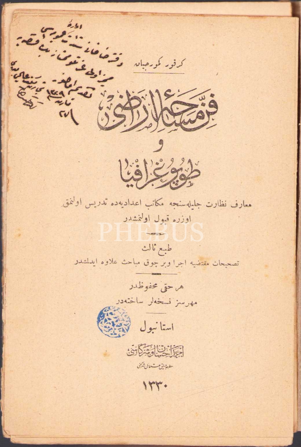 FENN-İ MESÂHA-İ ARÂZÎ VE TOPOGRAFYA, Kirkor Kömürcüyan, ithaflı ve imzalı, Ahmed İhsan ve Şürekası Matbaacılık Osmanlı Şirketi, İstanbul 1330, 13x19 cm, sayfaları açılmamış haliyle