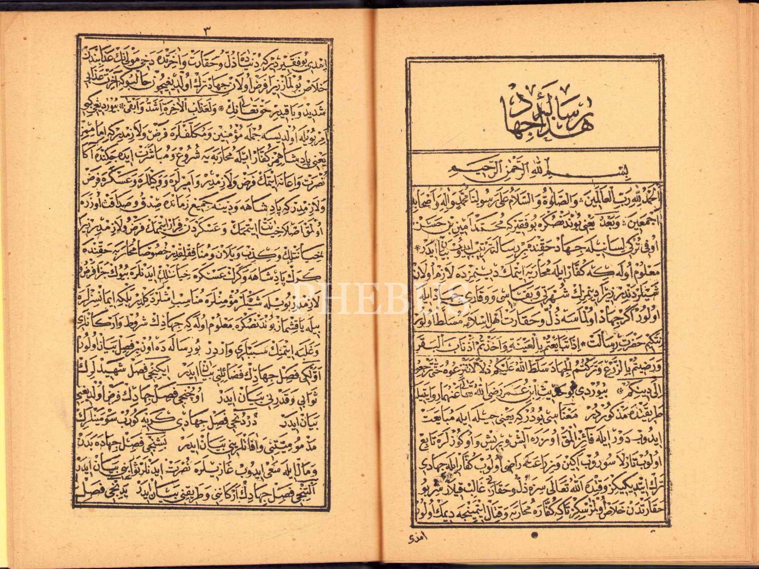 HATUNLAR HAKKINDA İDDET RİSÂLESİ, Mehmed Emin Efendi, 1327, 24 s.; RİSÂLE-İ CİHÂD, Mehmed Emin b. Hasan Ofi, 23 s., 14x20 cm