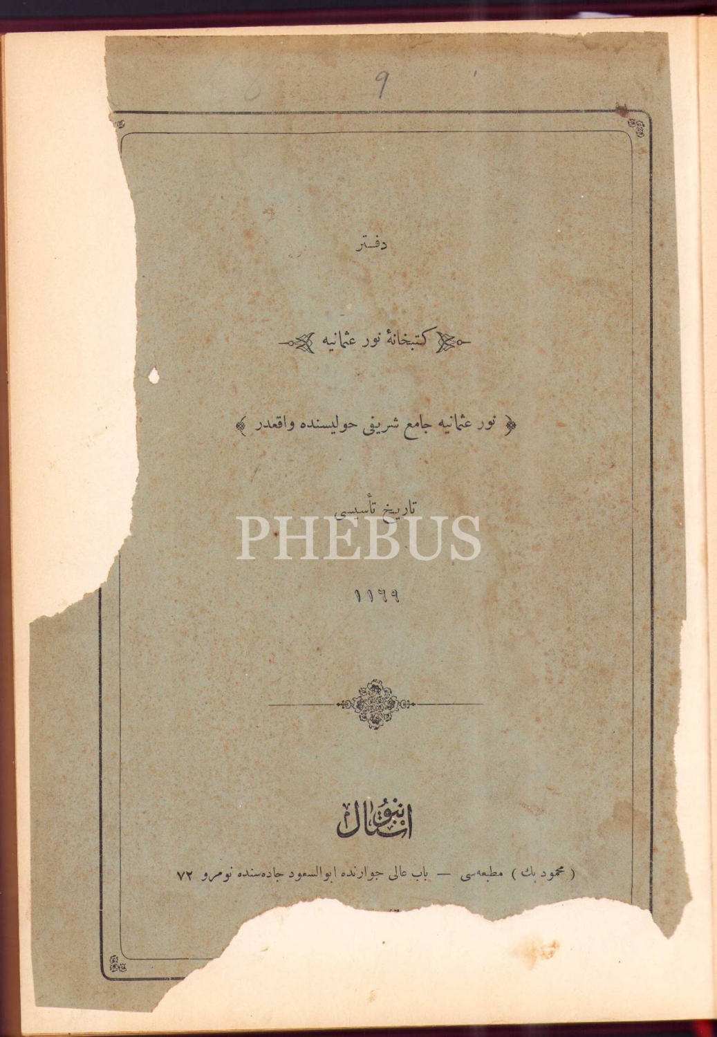 DEFTER-İ KÜTÜBHÂNE-İ NÛRUOSMÂNİYE, Mahmud Bey Matbaası, İstanbul, 338 s., 21x28 cm