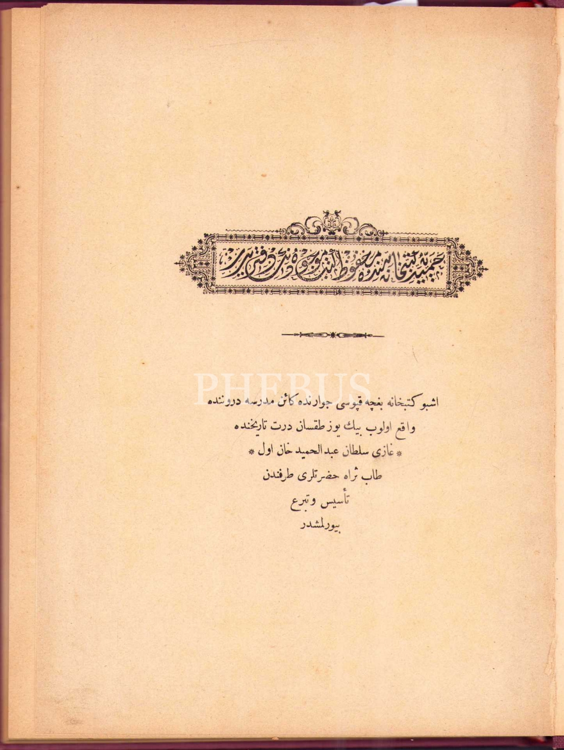 HAMÎDİYYE KÜTÜBHÂNESİ'NDE MAHFÛZ KÜTÜB-İ MEVCÛDE DEFTERİ, Osmaniye Matbaası, Darü'l-Hilafeti'l-Aliyye 1300, 152 s., 20x28 cm
