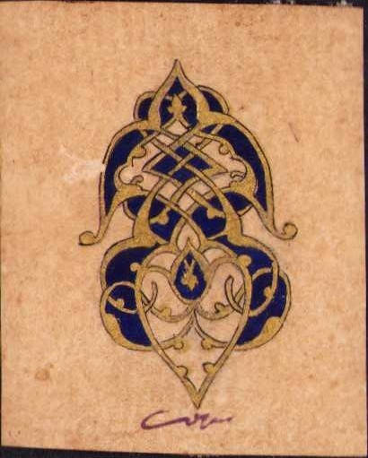 Süheyl Ünver Hoca'dan Osmanlıca imzalı tezhip çalışması, 3,5x4,5 cm