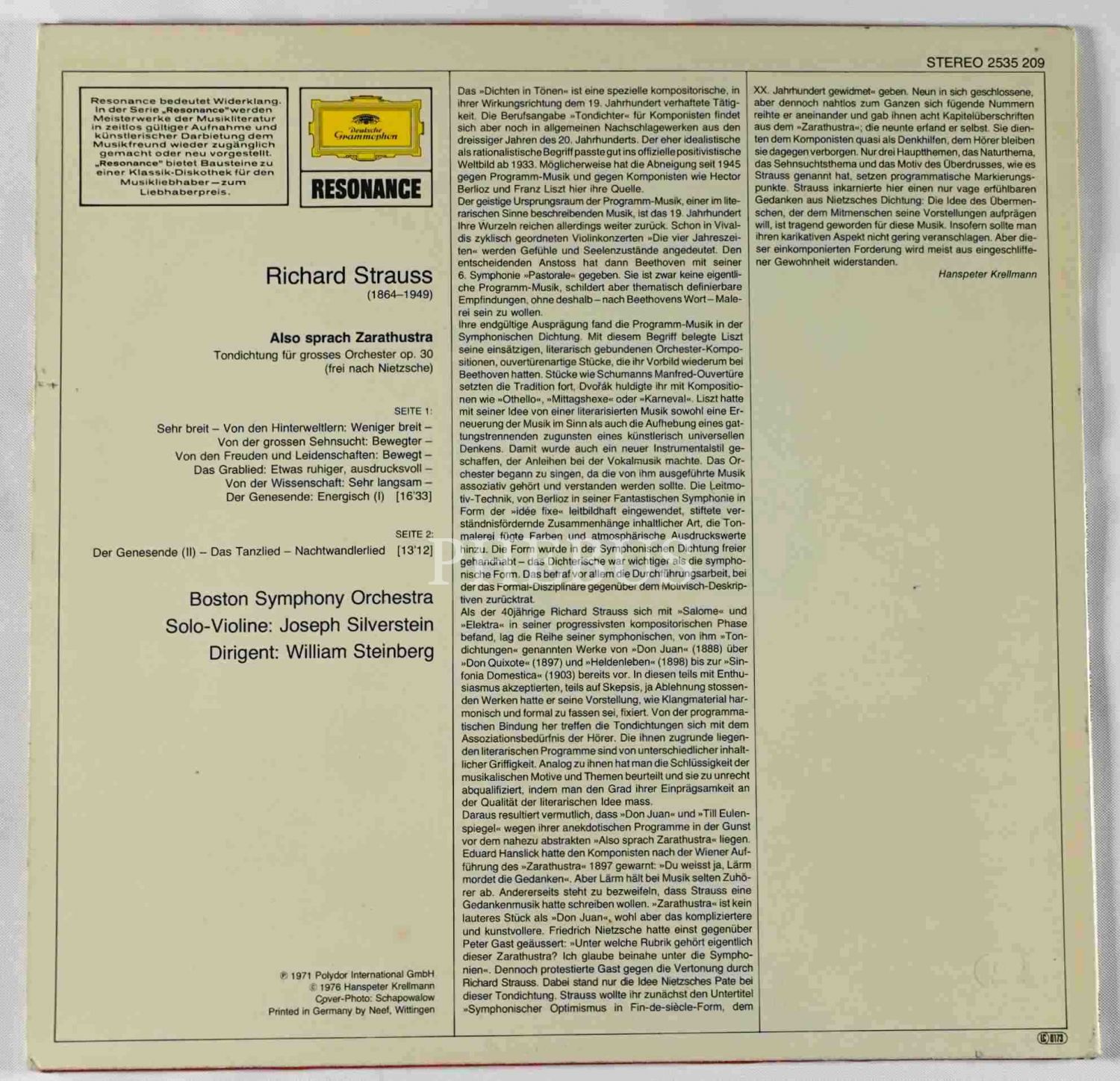 RICHARD STRAUSS / WILLIAM STEINBERG - Also Sprach Zarathustra