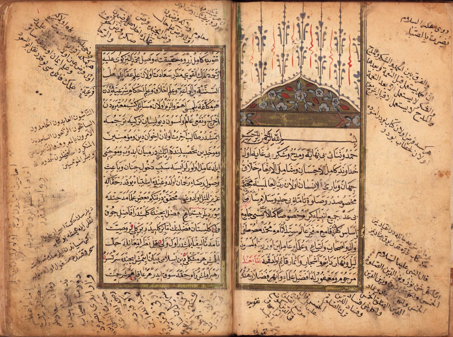 Birgivi şerhi ve esmaül hüsna şerhi, iki kitap bir arada deri cildinde 14x21 cm