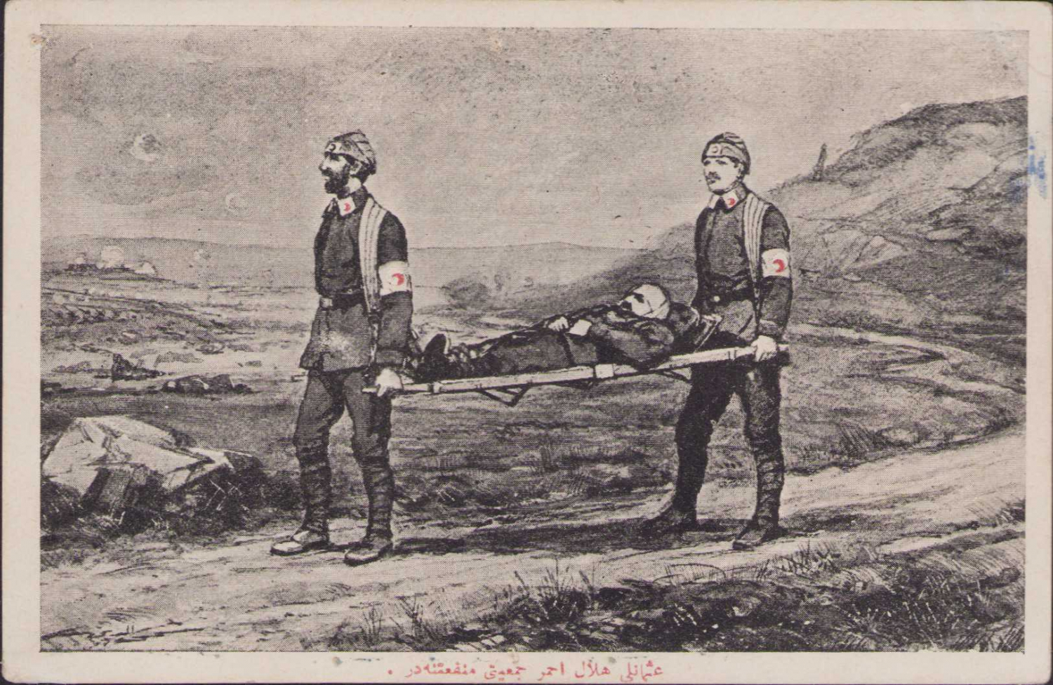 Hilali Ahmer serisi, çok nadir kartpostal, cephede yaralı taşıyan askerler görselli