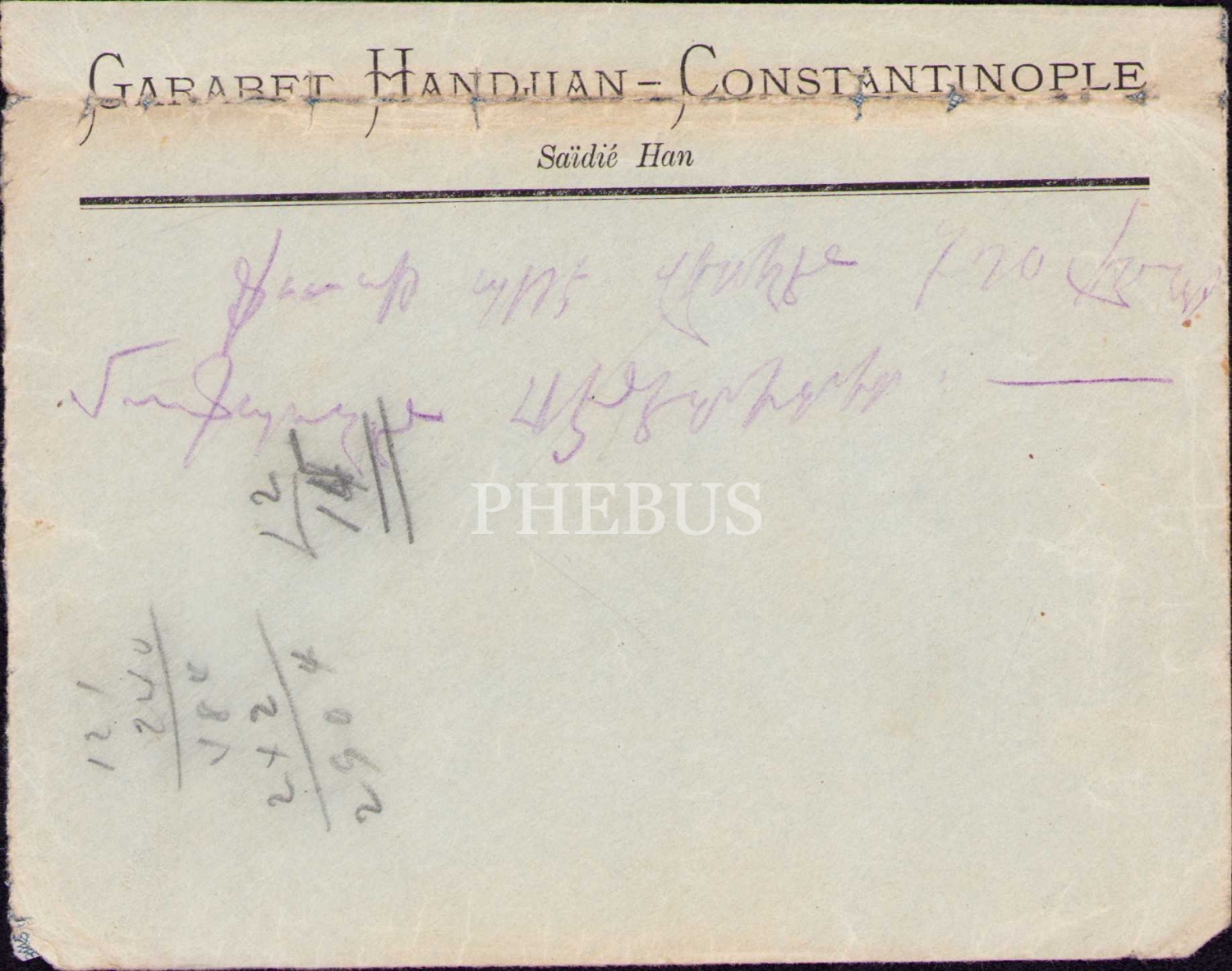 Garabet Handuan-Constantinople antetli zarf, 12x15 cm
