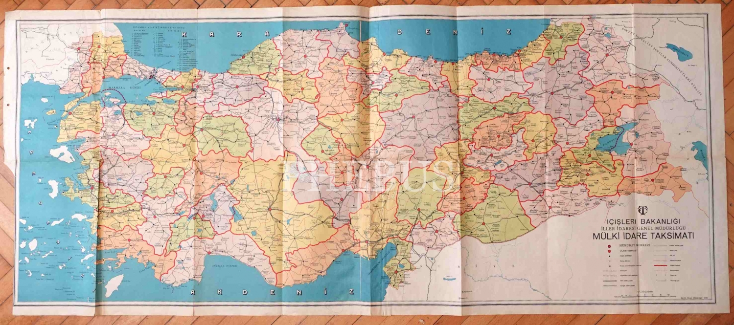 Türkiye Haritası (Mülkî İdare Taksimatı), Harita Genel Müdürlüğü 1960, 66x156 cm