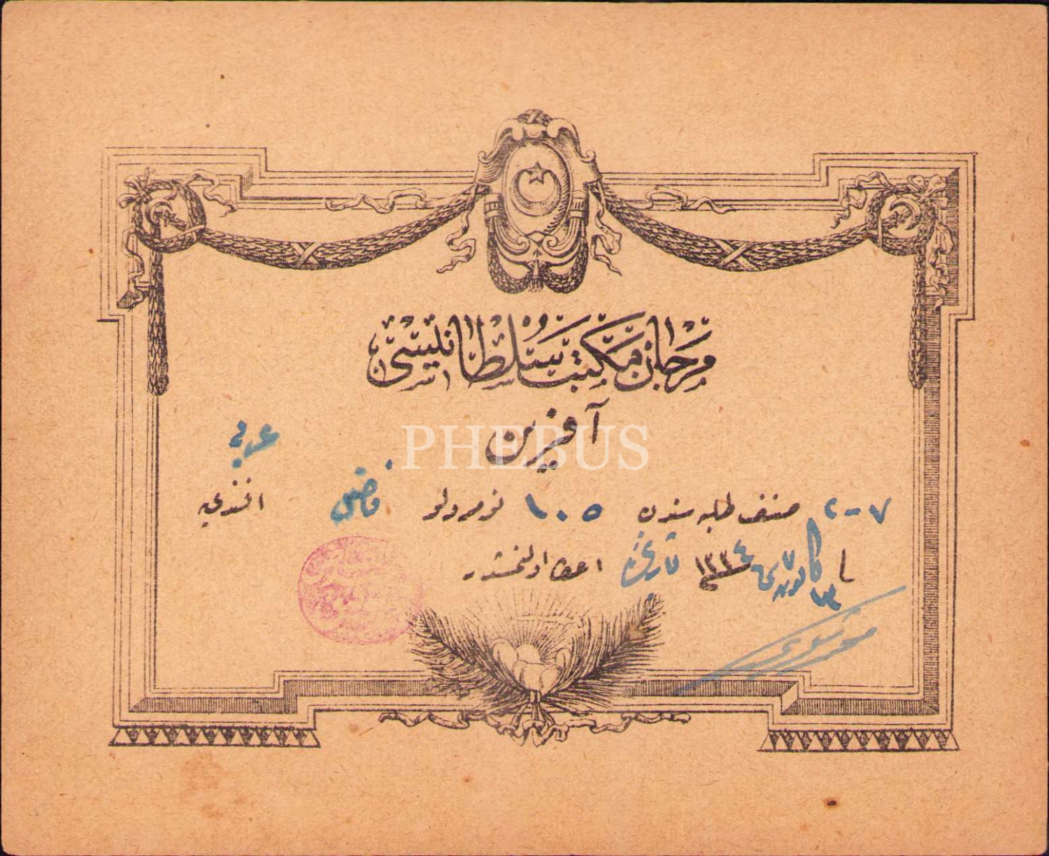Eğitim tarihi: Mercan Mekteb-i Sultanisi´nden Arapça dersi için 1334 tarihli aferin kâğıdı, 11x13 cm