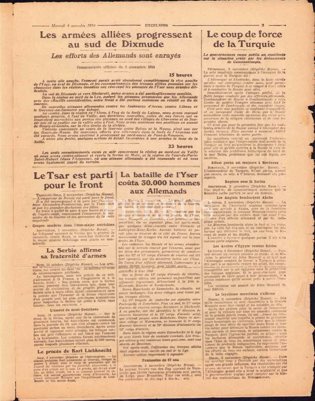 Excelsior gazetesinin 4 Kasım 1914 tarihli sayısı, 1. Dünya Savaşı´nda Osmanlı Devleti´nin durumuna dair fotoğraflarıyla, 28x37 cm