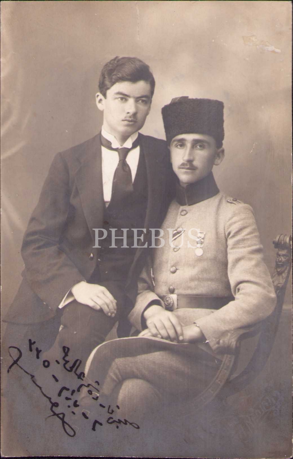 Liyakat madalyalı subay ve genç sivil beyefendi, Photo A. Nedjati soğuk damgalı ve 1335 tarihli