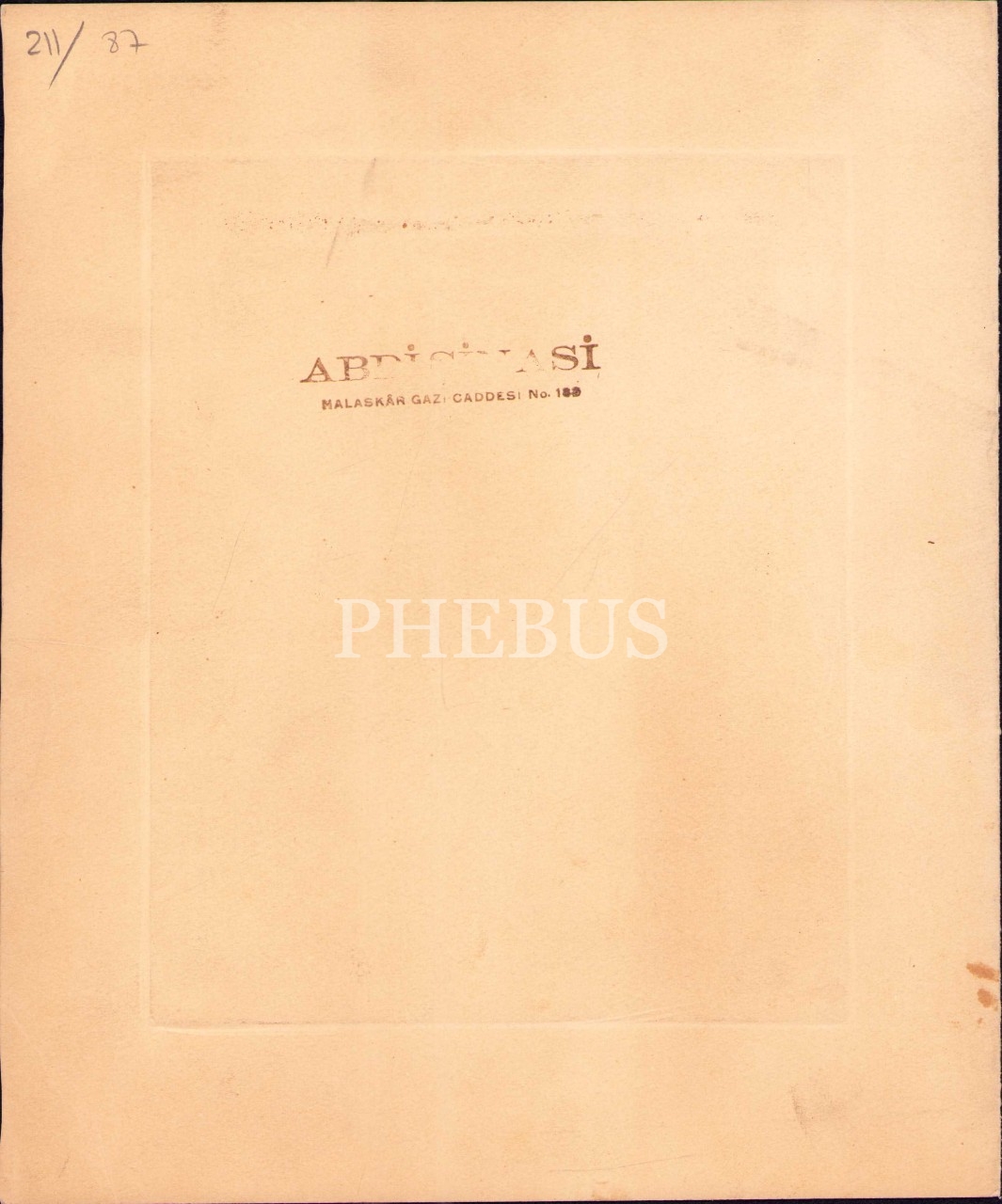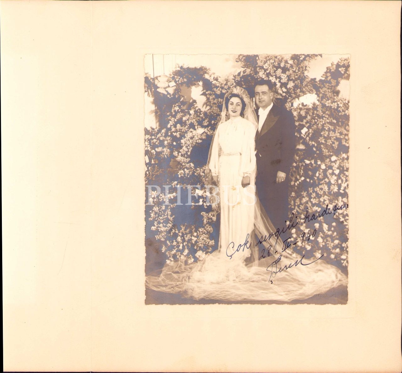 Özel kabında gelin-damat hatıra fotoğrafı, 1940 tarihli, Abdi Şinasi soğuk damgalı, 14x18 cm