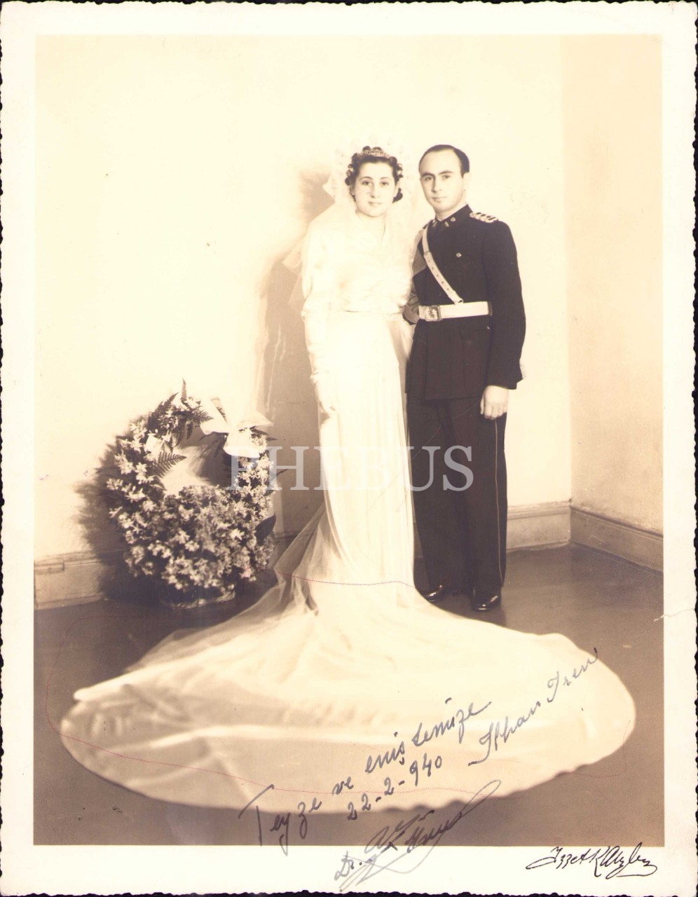 1940 tarihli düğün hatıra fotoğrafı, İzzet Kanzler damgalı, 18x23 cm, üst köşesi hafif kırık haliyle