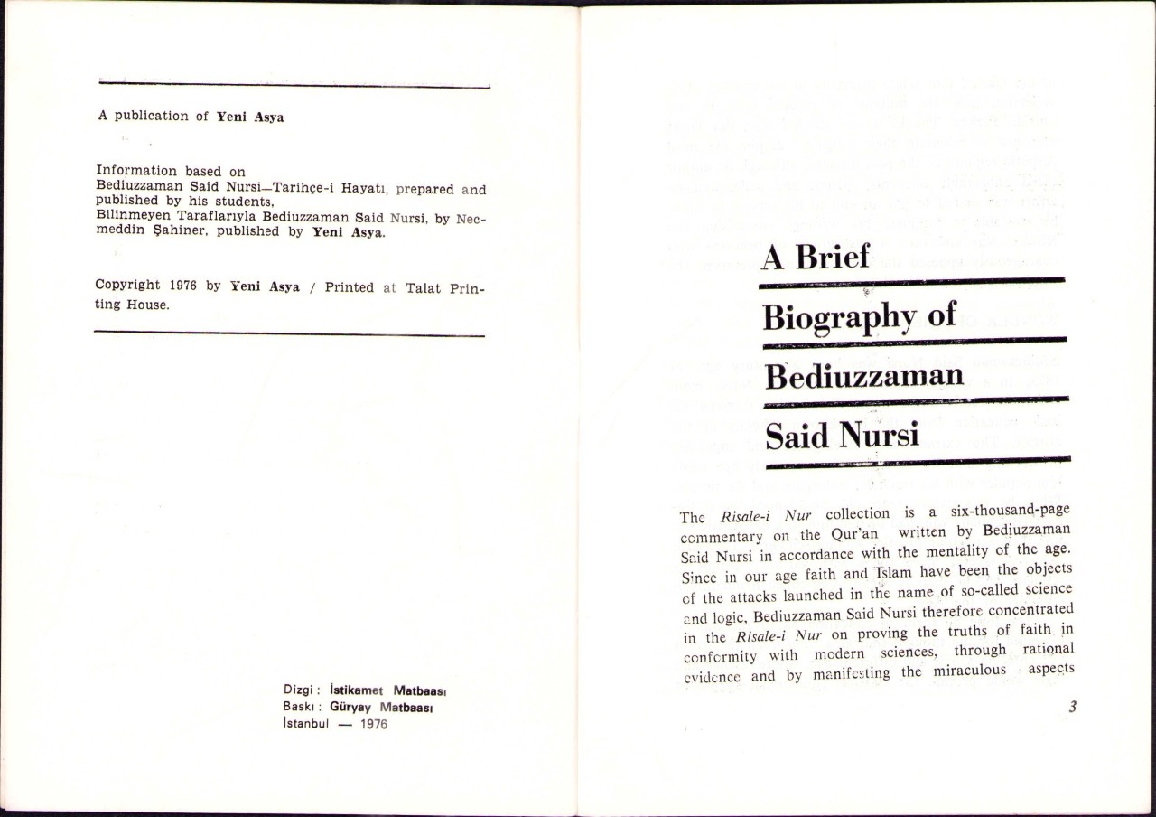 A Brief Biography of Bediuzzaman Said Nursî, Yeni Asya Yayınları, 16 s., 13x19 cm