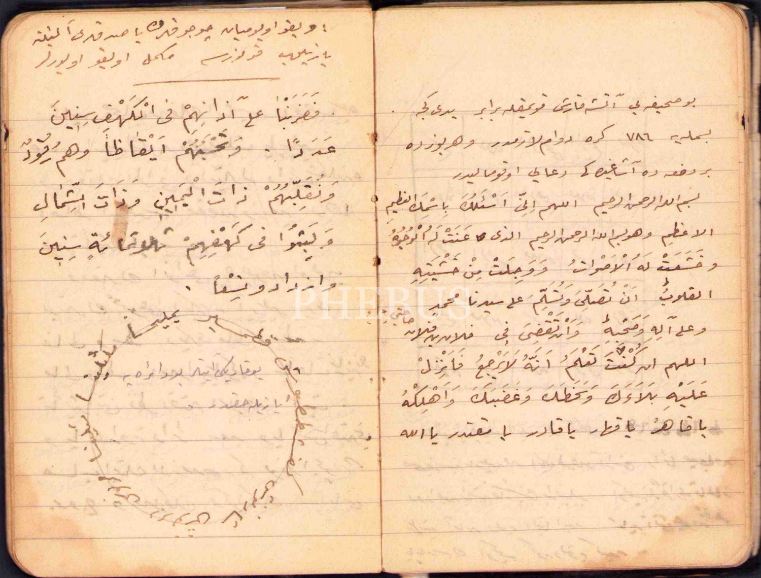 Çeşitli hastalıklar vd. durumlar için derlenen dua ve vefk defteri, 104 s., 9x15 cm