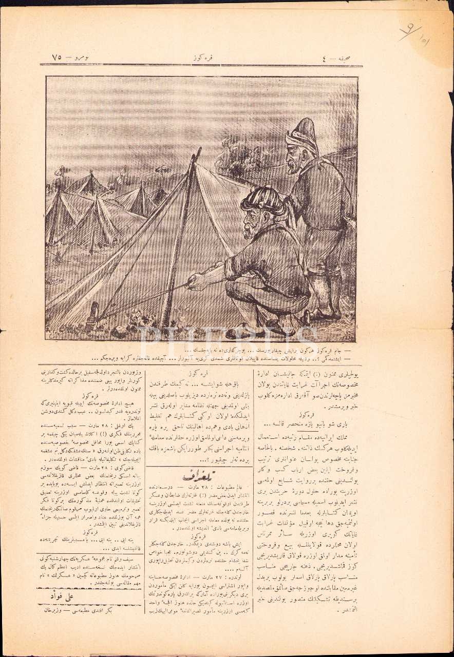 Eğlence gazetesi Karagöz´ün 75. sayısı, 12 Nisan 1909, "Eyfel Kulesi´ni geçen ikinci bir bedia-i zaman" başlıklı kapak görseliyle, 28x41 cm, kenarları hafif yırtık haliyle