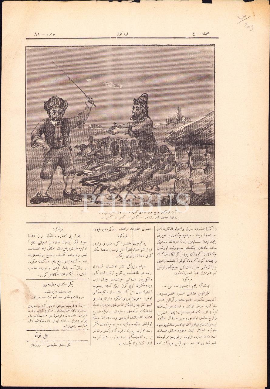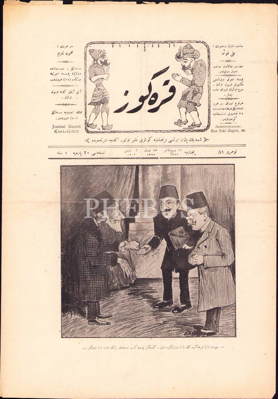 Eğlence gazetesi Karagöz´ün 81. sayısı, 6 Mayıs 1909, 28x41 cm
