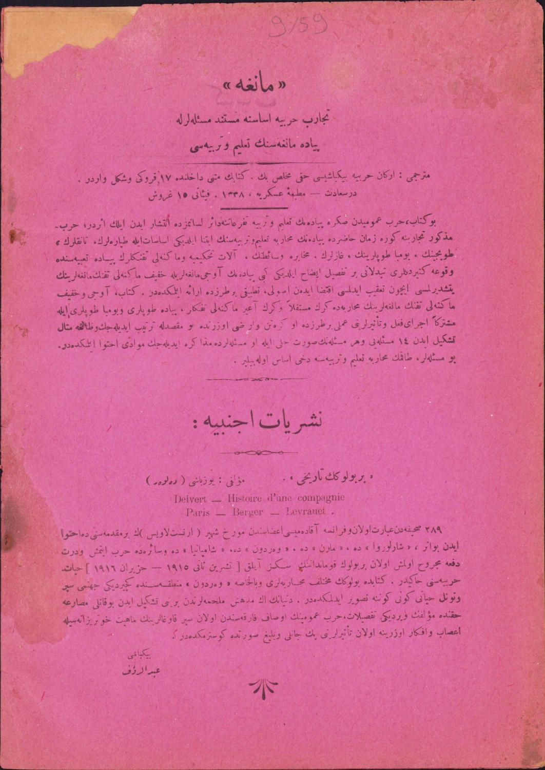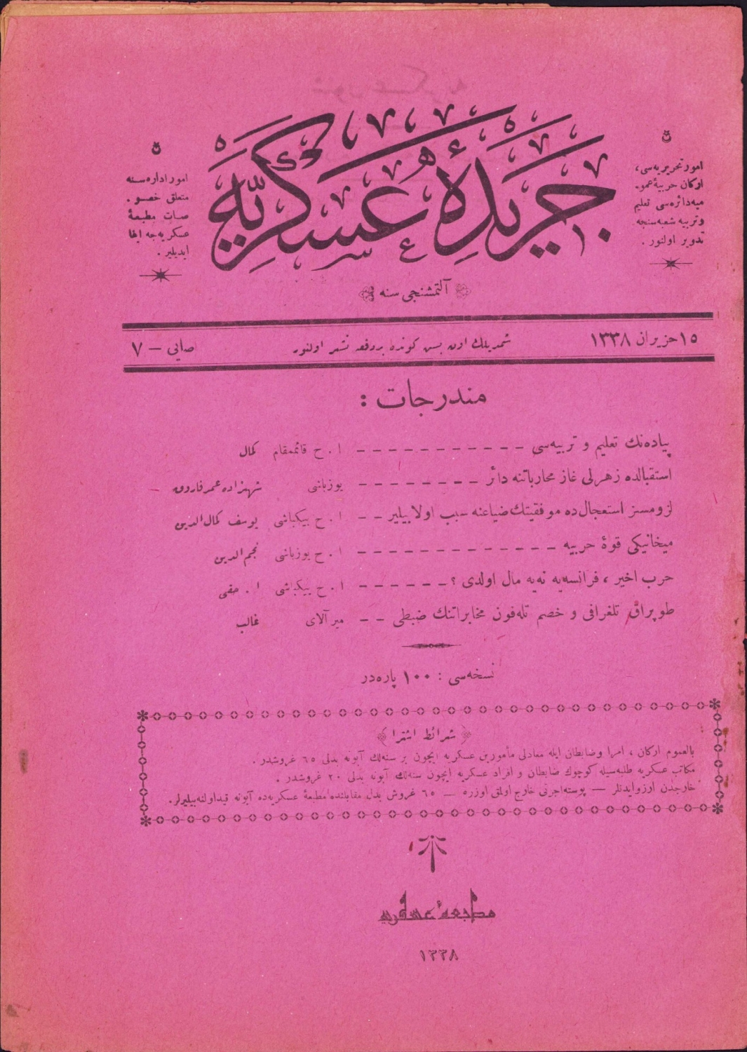 Ceride-i Askeriye Mecmuası, Matbaa-i Askeriye, İstanbul, 1338, Osmanlıca