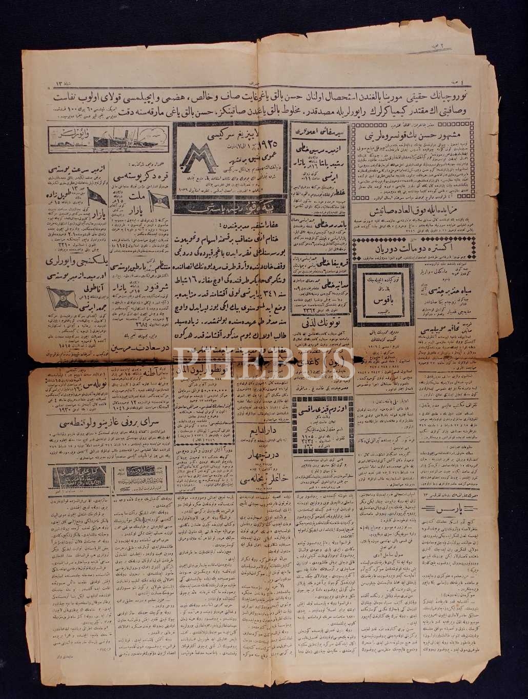 Son Telgraf gazetesinin 13 Şubat 1341 tarihli sayısı, 46x64 cm