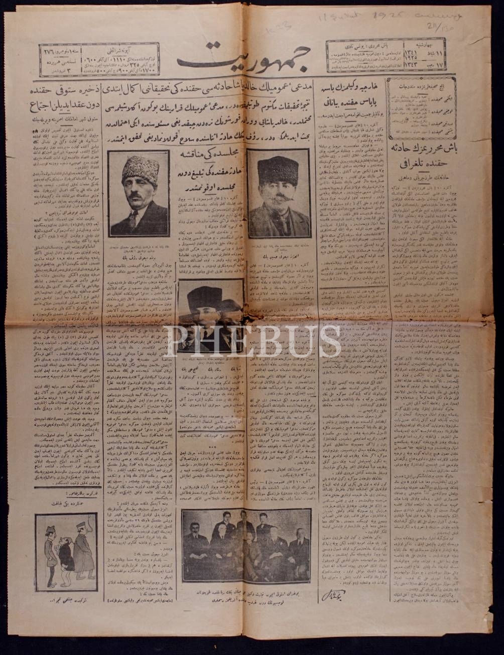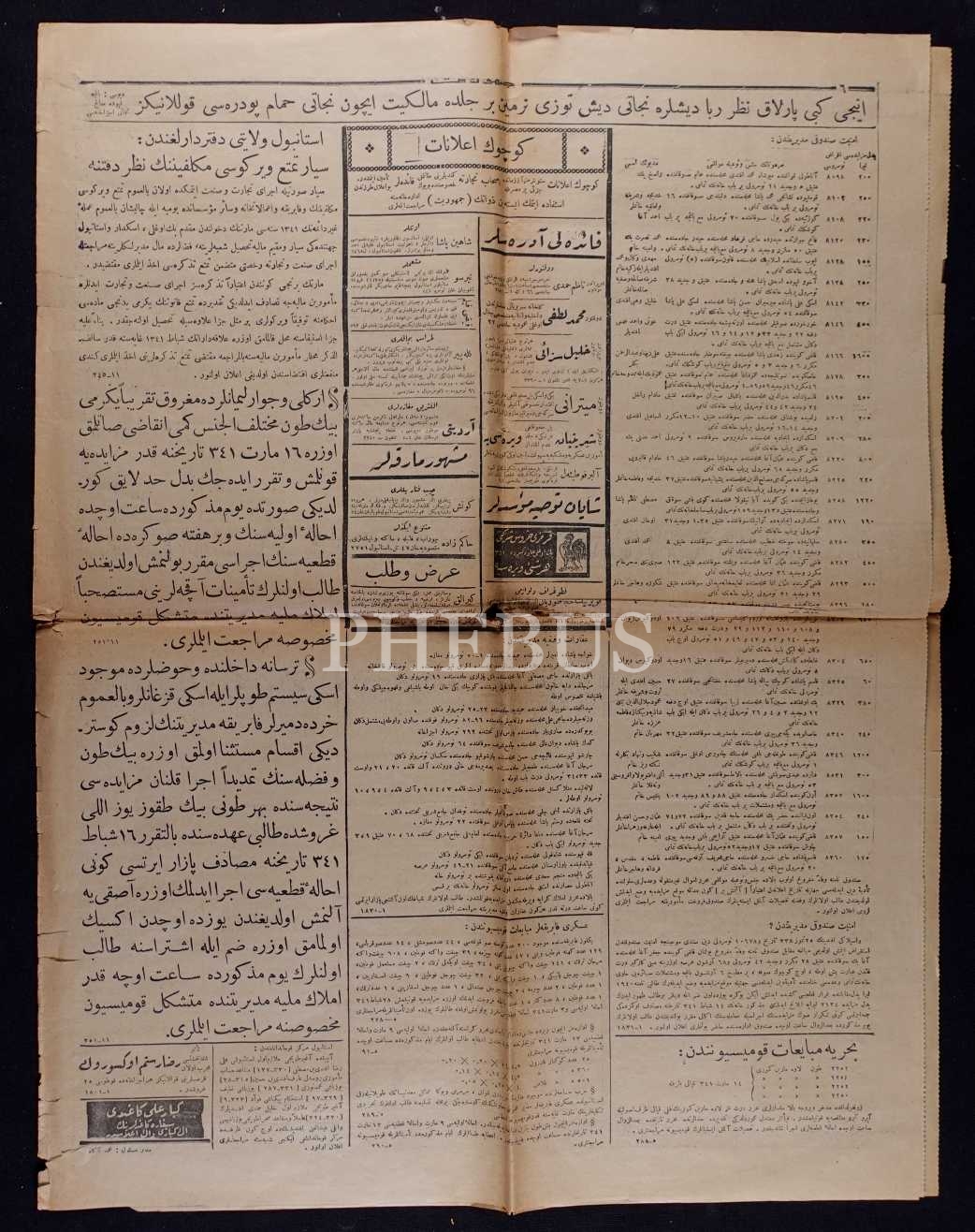 Ön yüzde, "Müddei-i umumilik Halid Paşa hadisesi hakkındaki tahkikatını ikmal etdi", "Zahire stoku hakkında dün akdedilen ictima", "Hariciye Vekilimizin Papas hakkında beyanatı" vd. başlıklı metinler yer almaktadır.