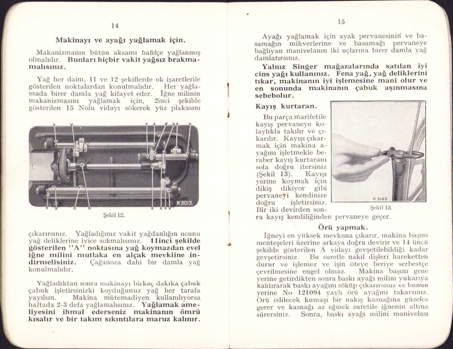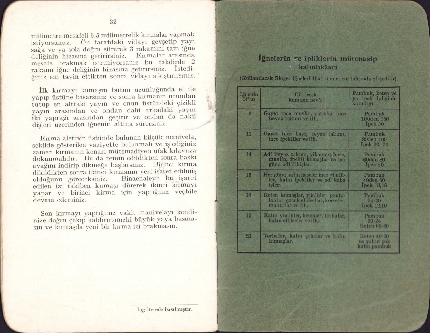 Singer Dikiş Makinasına ait talimatname, resimli, 32 sayfa