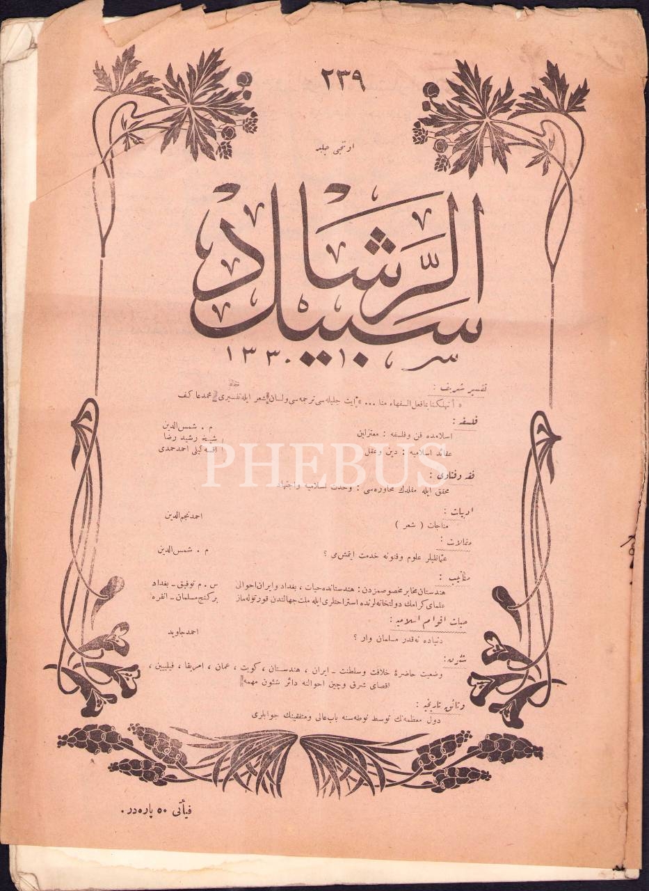 Mehmed Akif´in desteği ve başyazarlığı ile Eşref Edip tarafından yayımlanan dergi, İslam dünyasının uyanması ve yükselmesi için çalışmayı en kutsal görev bildiğini belirtmiş ve meşrutiyet yanlısı bir tavır benimsemiştir. Bu sayıda M. Şemseddin, Aksekili Ahmed Hamdi, Şeyh Reşid Rıza gibi isimlerin yazısı yer almıştır.