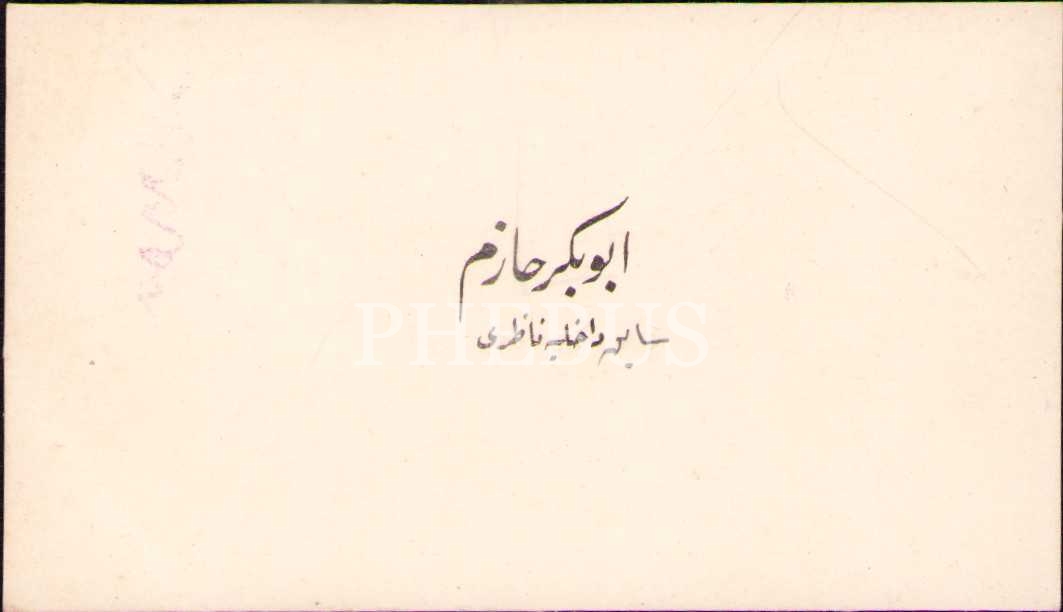 Dahiliye Nazırı Ebubekir Hazım´a ait kartvizit, alt köşesi kırık haliyle