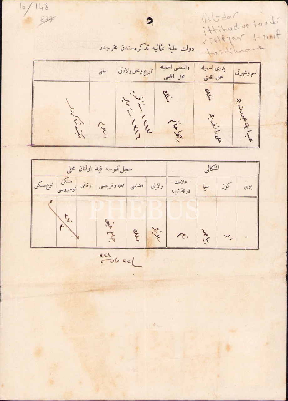 Eğitim tarihi: Üsküdar İttihad Sultanisi´nden fotoğraflı tasdikname, 1330 tarihli, 20x28 cm