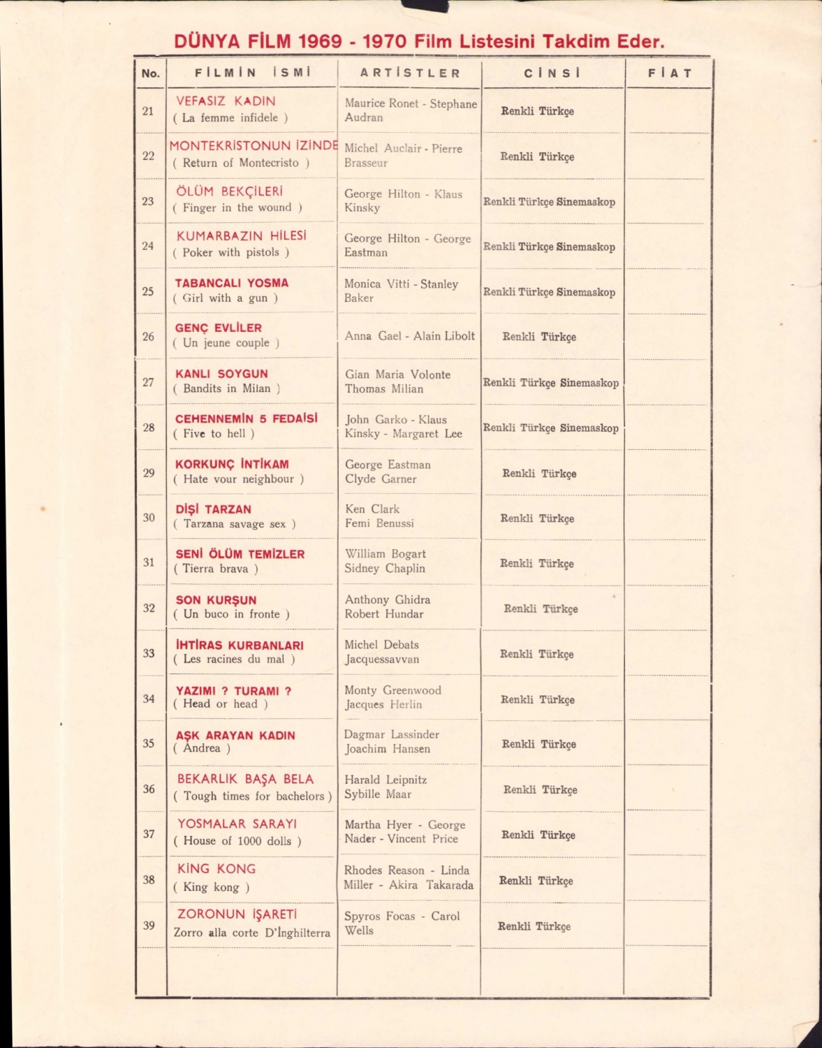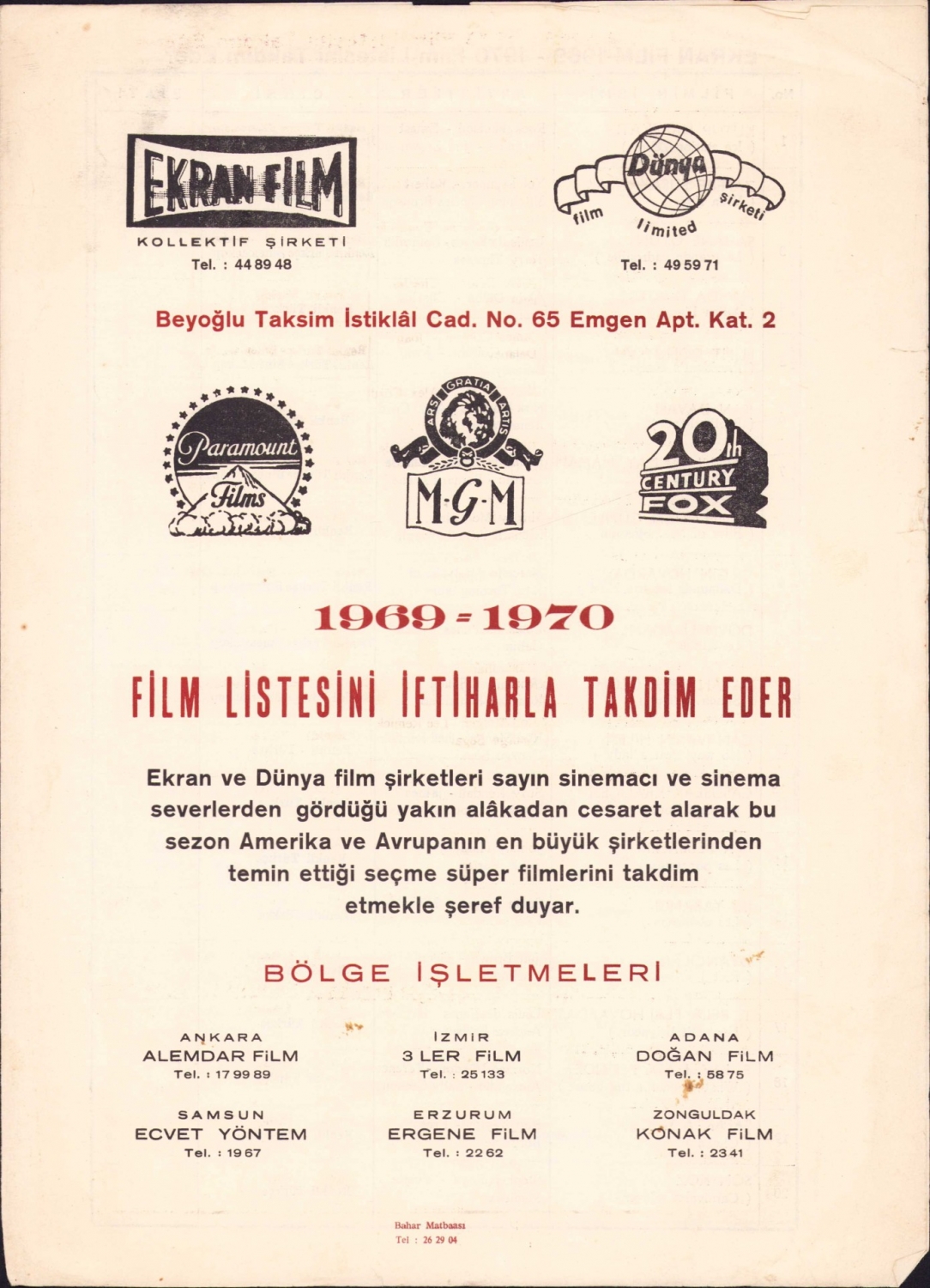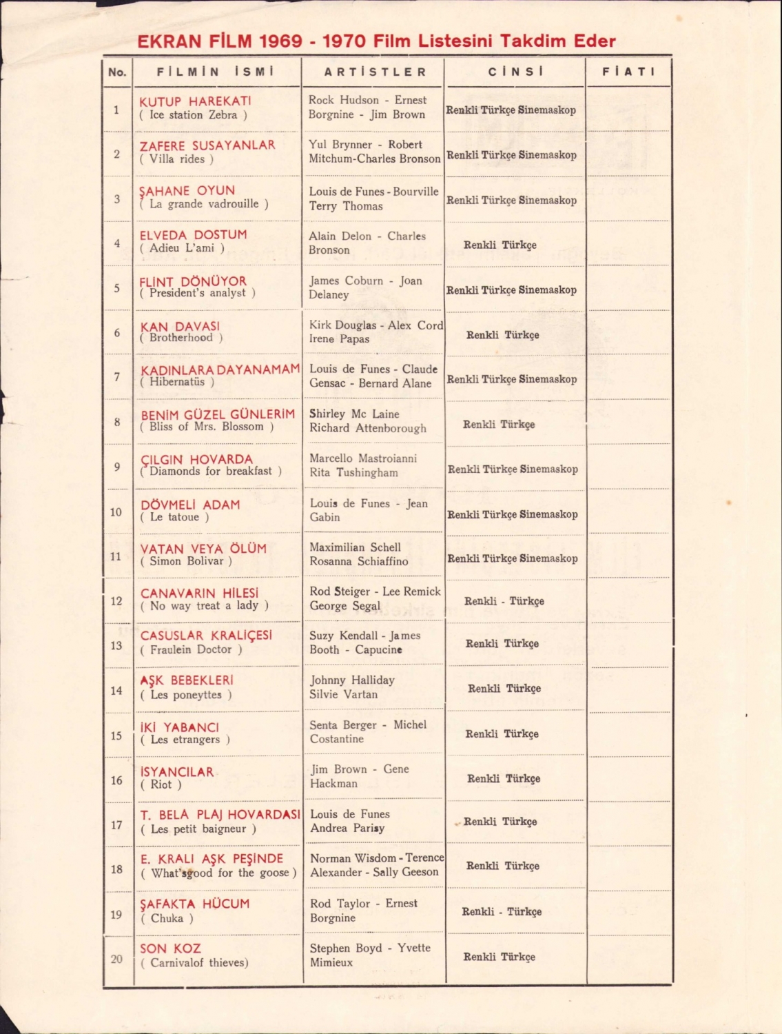 Ekran Film 1969 - 1970 film listesi