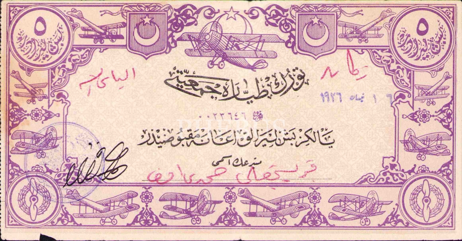 Havacılık tarihi: Türk Tayyare Cemiyeti´ne bağış makbuzu, 10x20 cm
