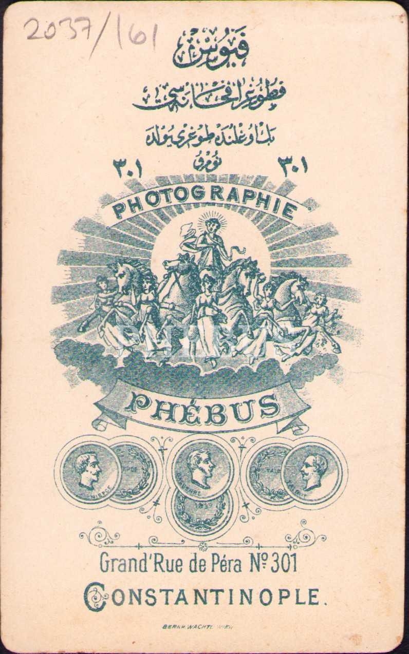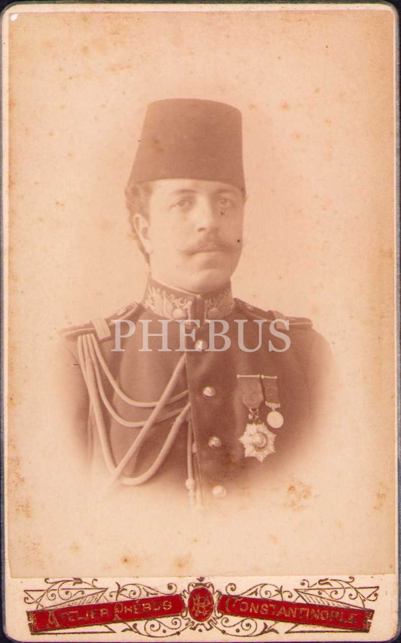 Osmanlı subayının kabin fotoğrafı, Phebus Fotoğrafhanesi-Constantinople, 7x11 cm