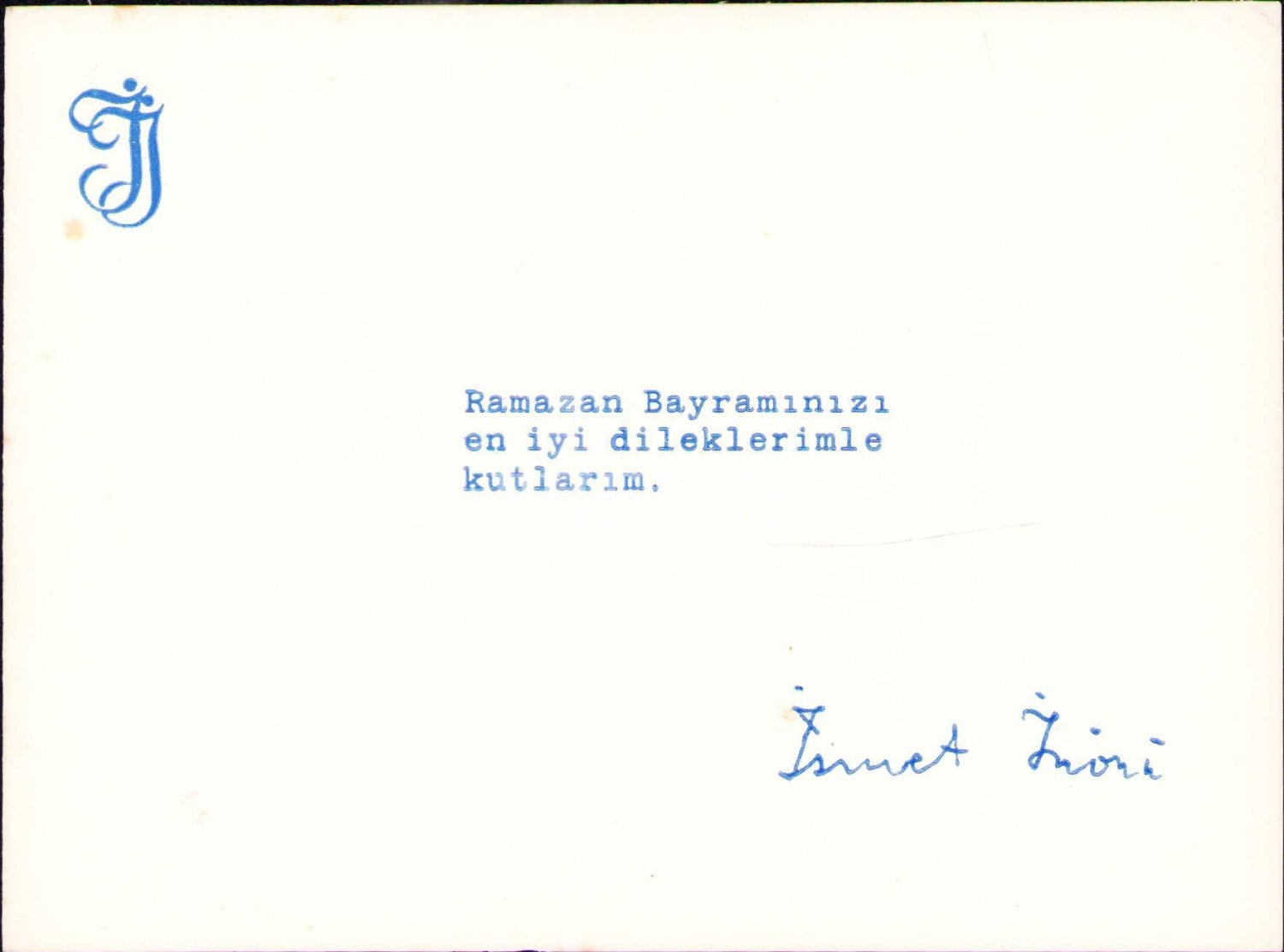 İsmet İnönü´den baskı imzalı bayram tebrik kartı, 11x15 cm
