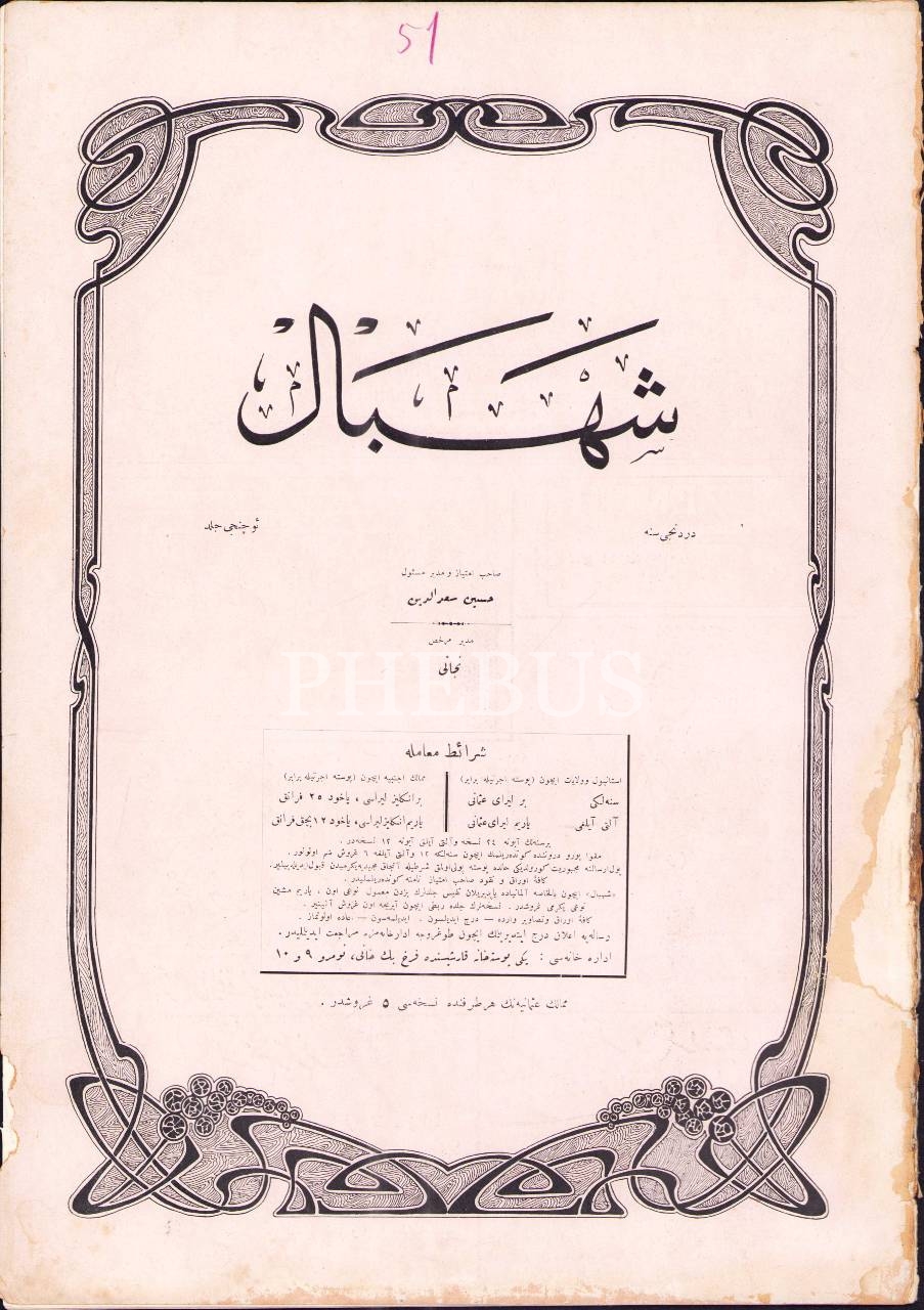 Şehbal dergisinin 51. sayısı, 15 Nisan 1328, Avusturya İmparotoru´nun heykeline ait kapak görseliyle, 27x39 cm, kapağı kısmen ayrık haliyle