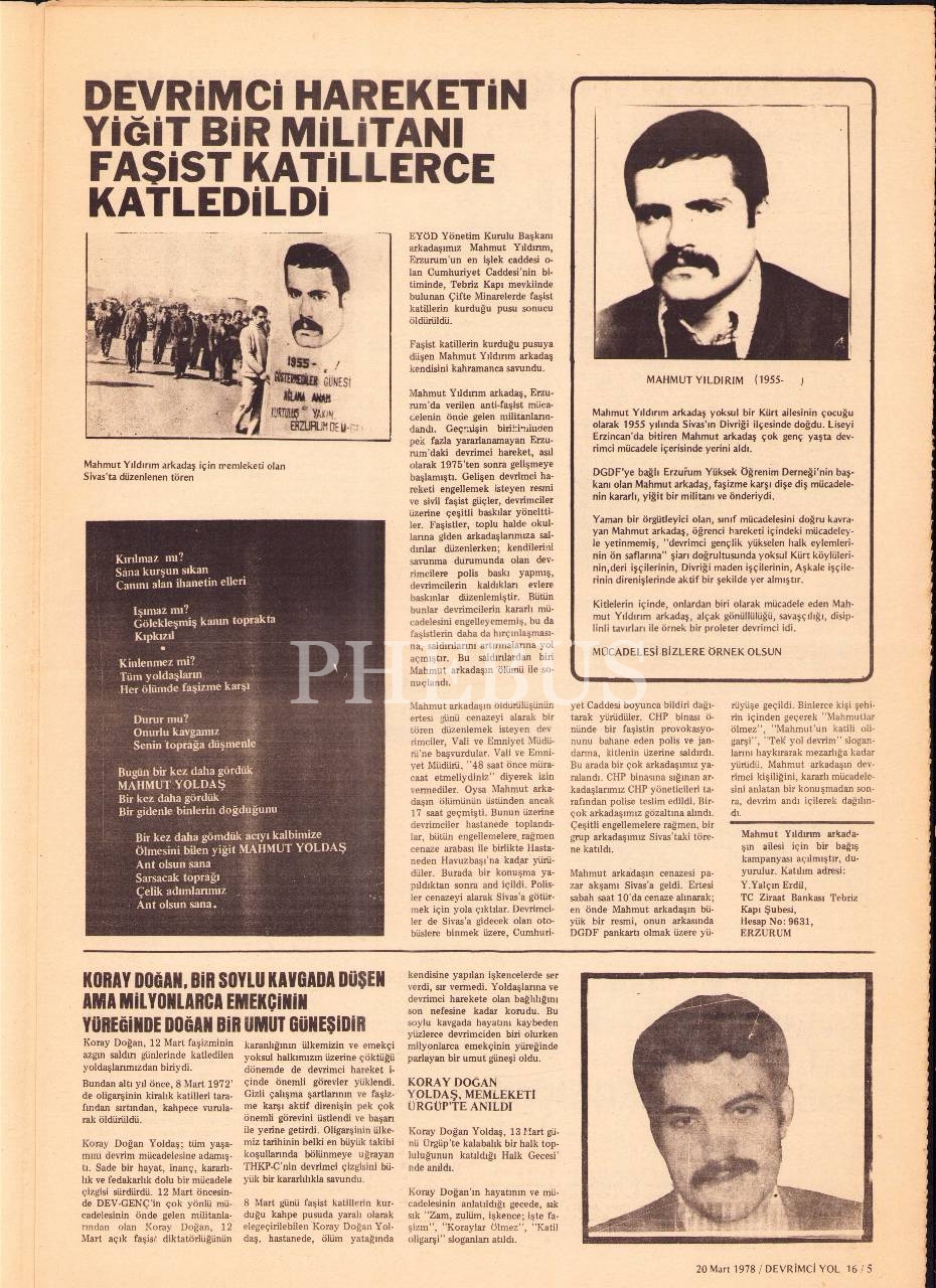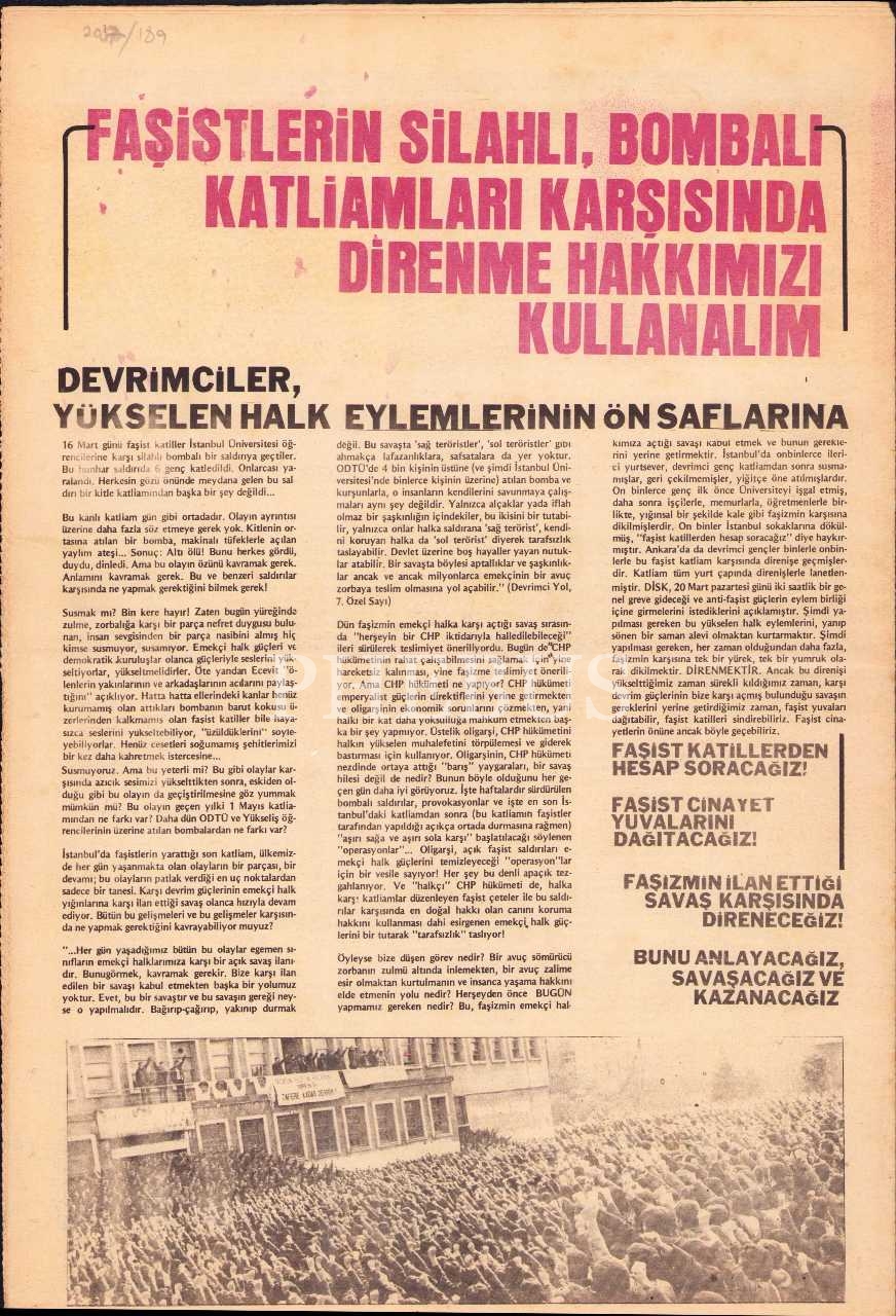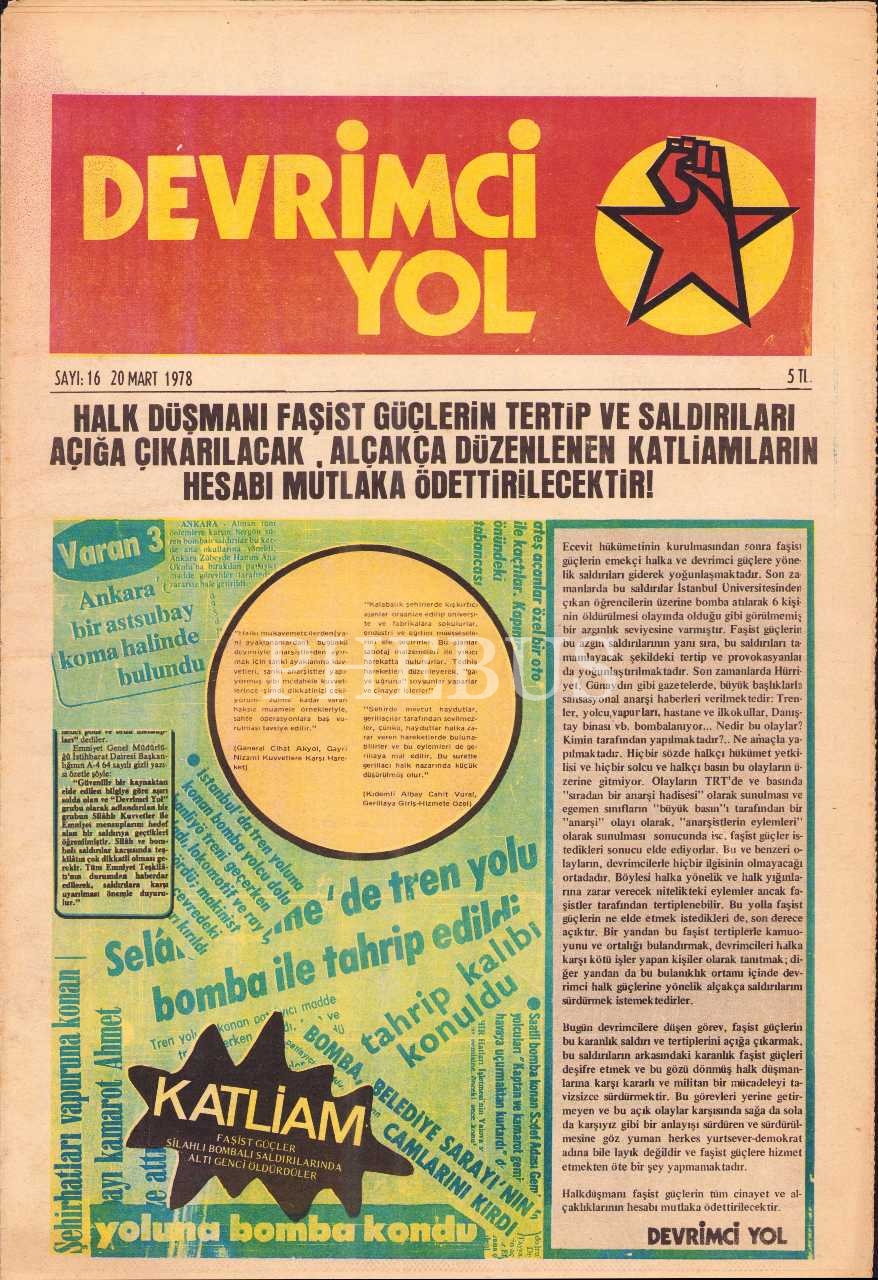 Devrimci Yol gazetesinin 16. sayısı, 20 Mart 1978, 29x42 cm