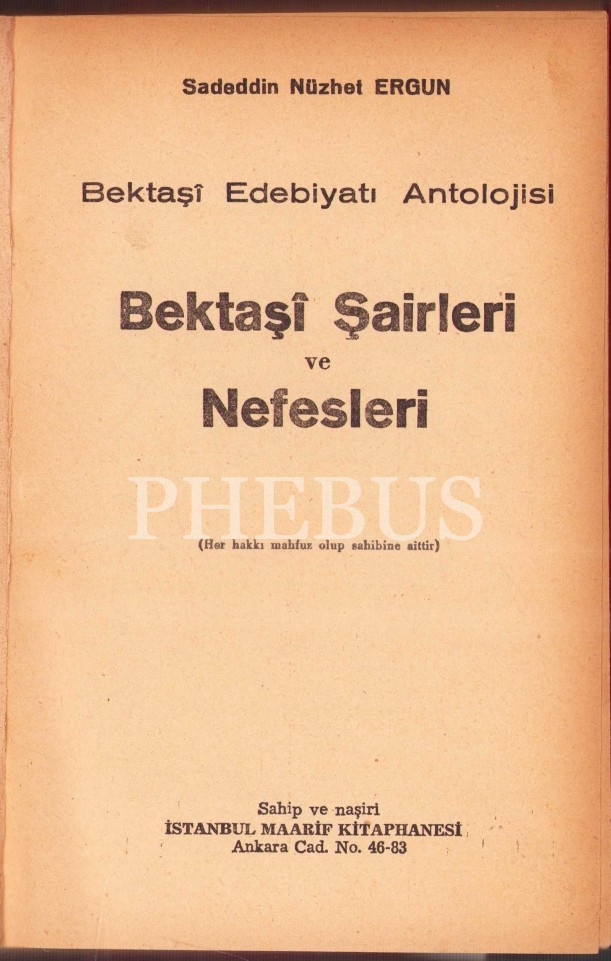BEKTAŞİ ŞAİRLERİ VE NEFESLERİ, Sadeddin Nüzhet Ergun, Maarif Kitaphanesi, İstanbul 1944, 14x21 cm