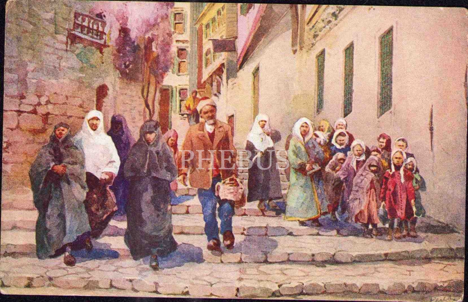 Eğitim tarihi: Okuldan çıkan çocuklar, Constantinople, E.F. Rochat, üst köşesi kırık haliyle