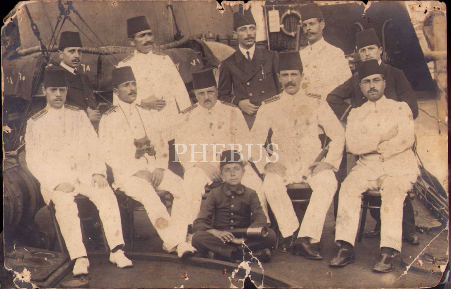 Bahriyelilerin 1331 tarihli hatıra fotoğrafı, kenarları yıpranmış haliyle